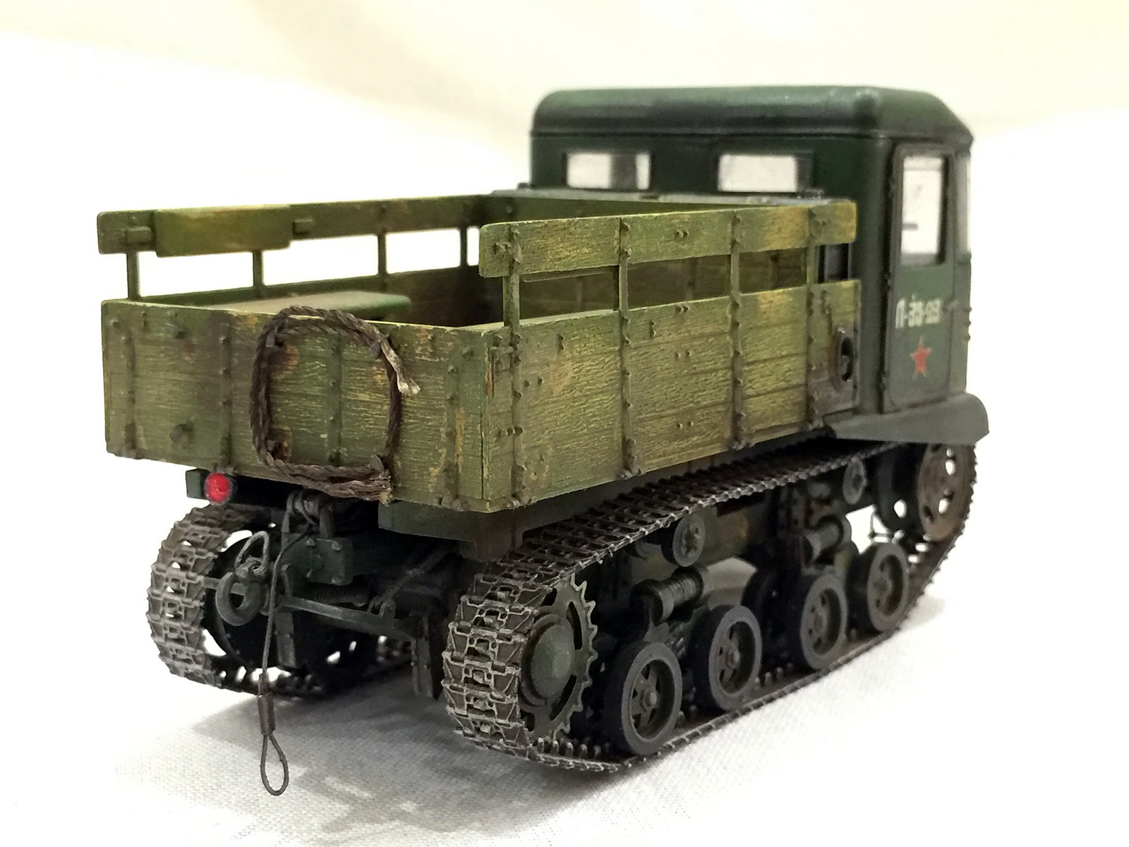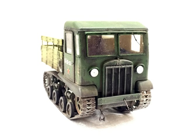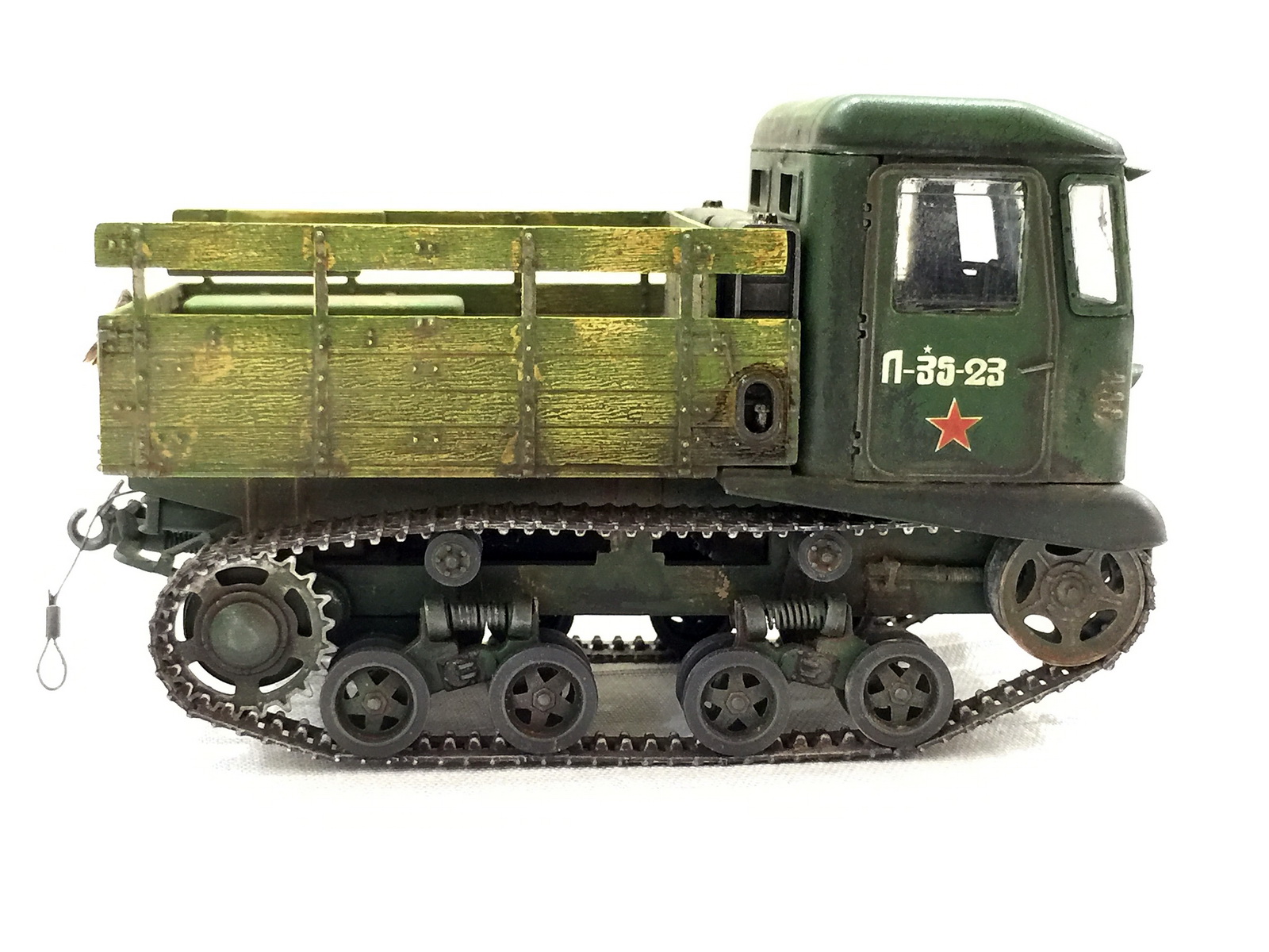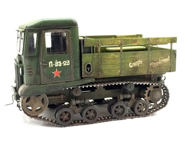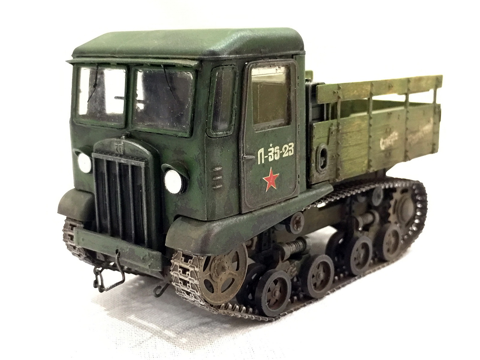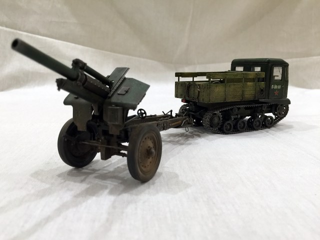 Стройка модели заняла месяц: 09.05.16 – 08.06.16. Качество деталей оцениваю на «четыре» (есть небольшие огрехи у деталей, но они решаемы простым путем). Покраску делал красками от А-Model. Опять решил попробовать жидкость для создания эффекта потрескавшейся краски от этой же торговой марки на крыше кабины. Что из этого получилось – видно на фото. Для зрелищности пришлось параллельно сделать какой-нить прицеп. Под горячую руку попала советская гаубица М-30 и автоприцеп АП-1 (хотя последний исторически никак не вяжется с СТЗ-5). Вот и все.
