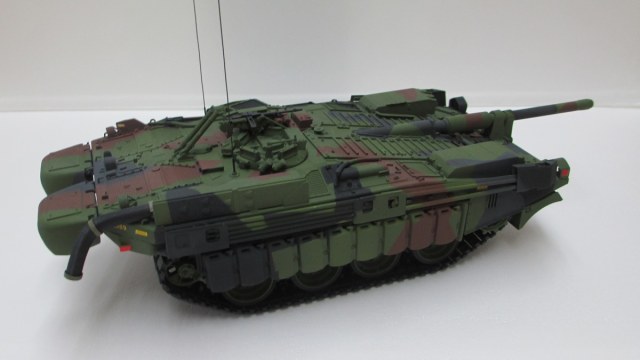 Окрашено неплохо, но камуфляж неправильный - натовский трехцветный, а у шведов камуфляж четырехцветный, оптика передняя сделана хорошо, боковая почему-то закрашена в цвет танка, есть другие небольшие неточности по окраске, шанцевый инструмент просто лежит на броне незакрепленный, гусянка совершенно не обработана, у настоящего танка ведь гусеница не резиновая? Ну и смывки не хватает однозначно. Автор, советую Вам в будущем внимательно изучать фото прототипа перед сборкой, а главное, обращать внимание на мелочи.