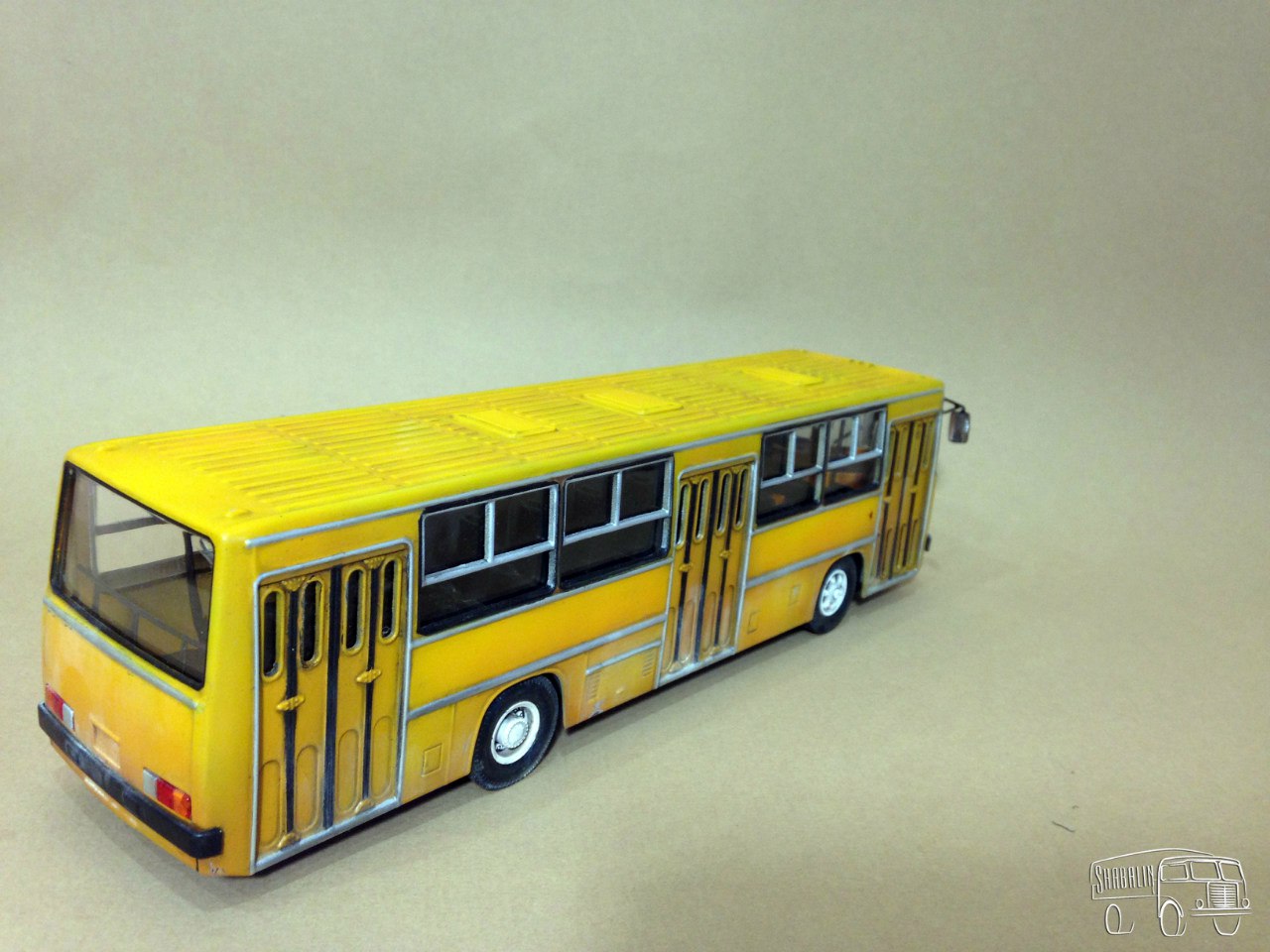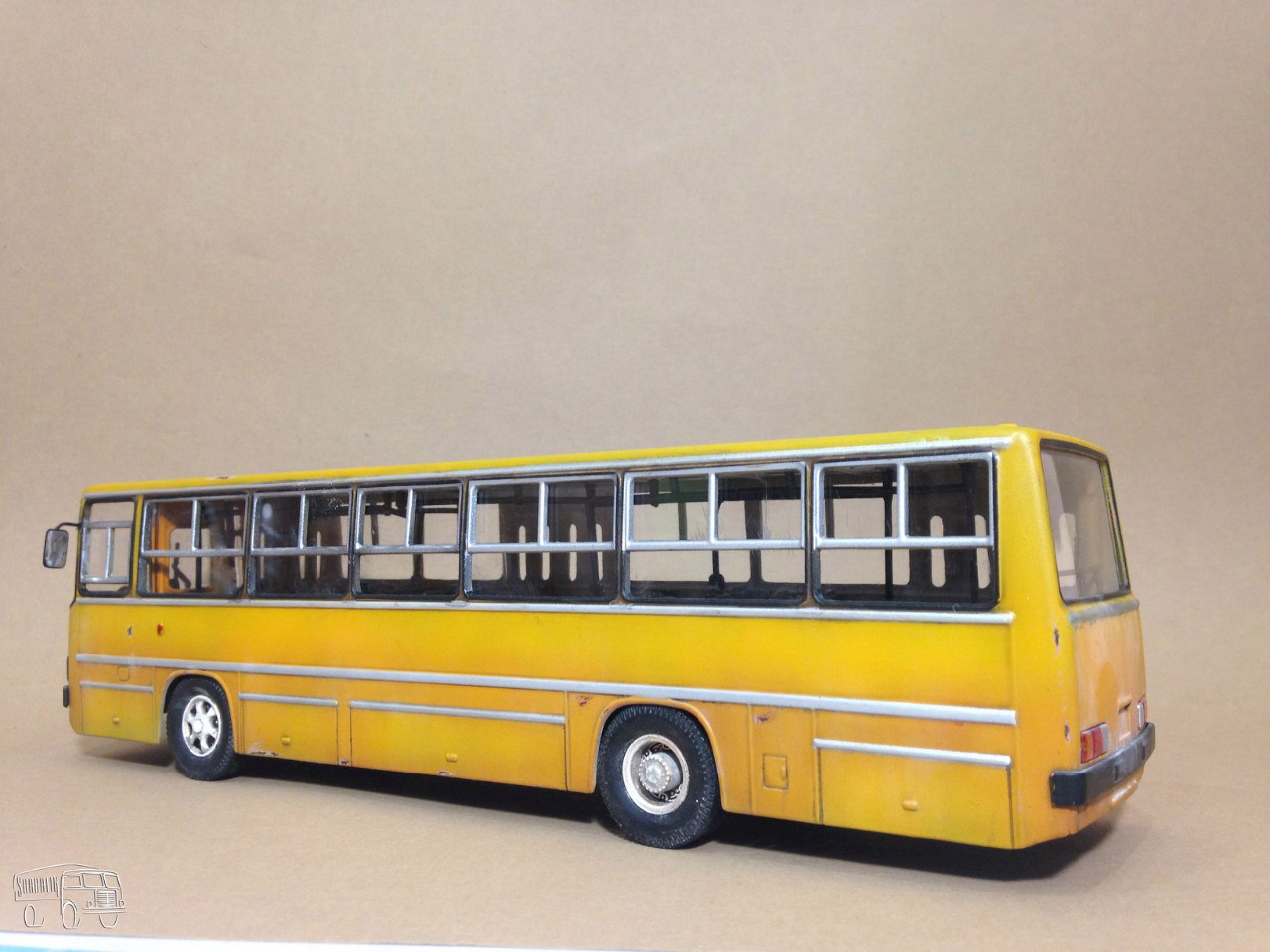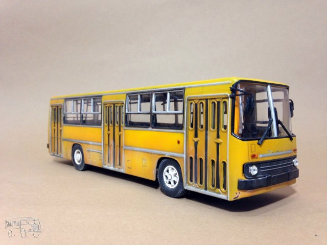 Я конечно понимаю ностальгию участников по поводу данного автобуса, но с точки зрения качественного воспроизведения модели, только в песок. Сильно бросается в глаза, как мне кто-то сказал на форуме "пионерская покраска серебряной краской", вокруг окон была резиновая прокладка. Жаль что такую модель Вы испортили серебряной краской. Сделайте Икарус какой он был и есть на дорогах городов. Ну а дворниками можно слона убить.