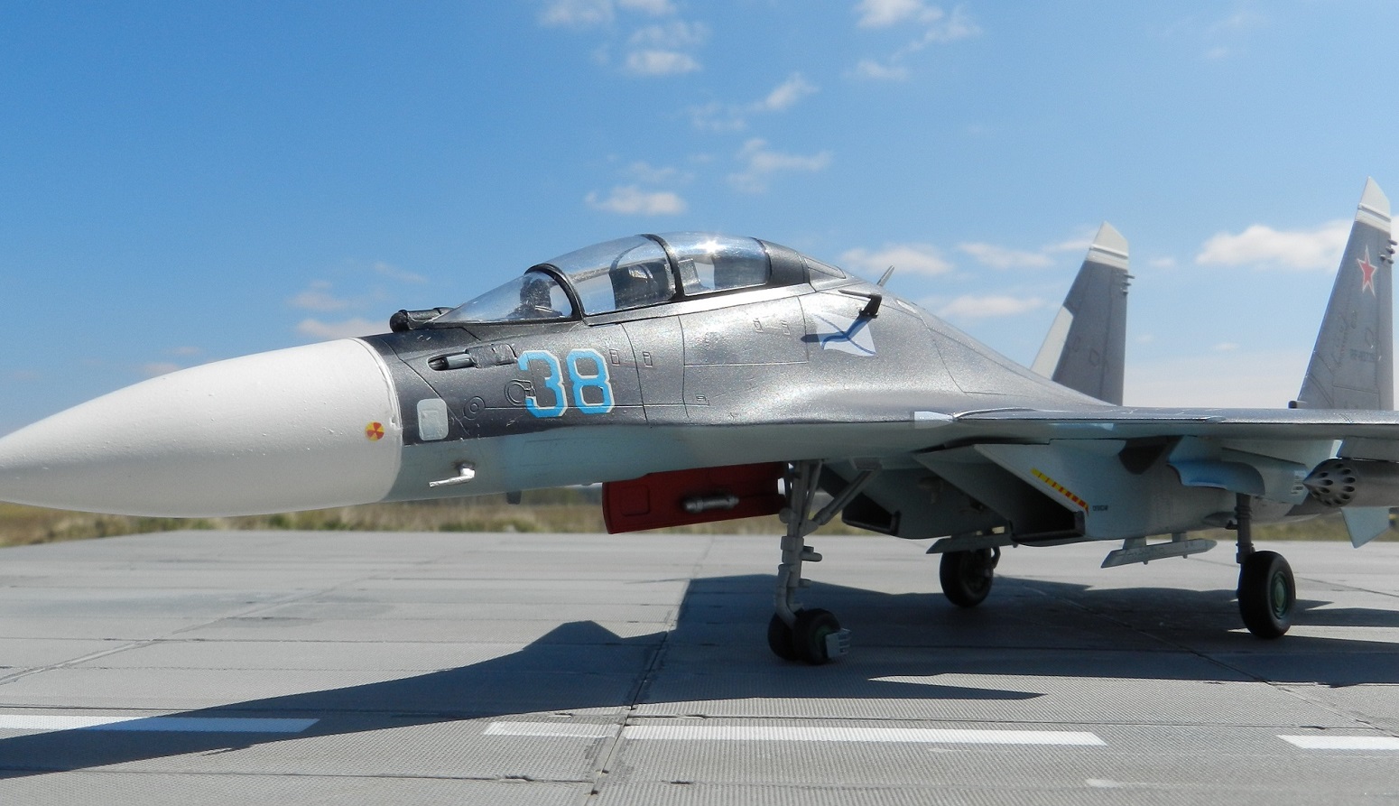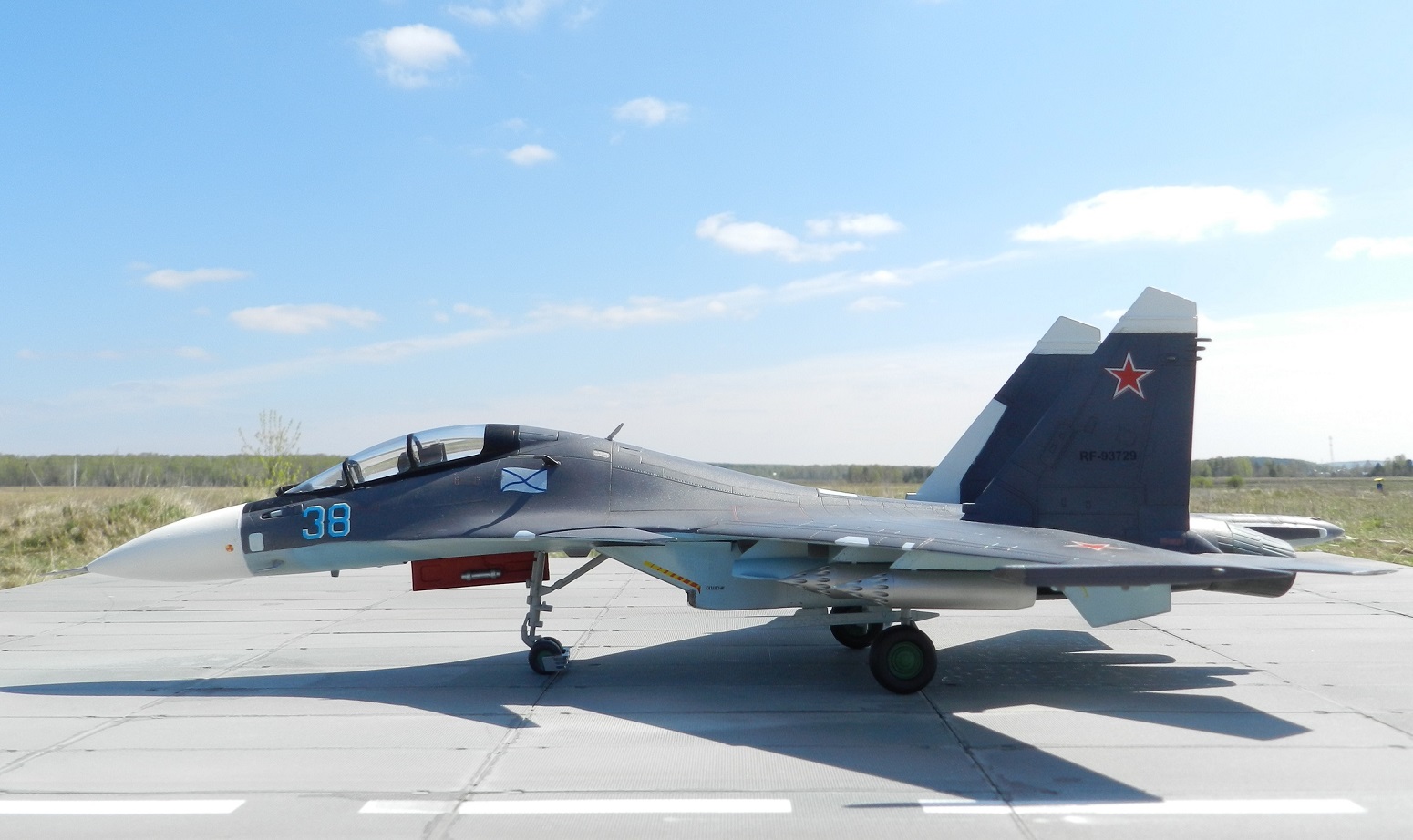 Всем добрый день, представляю вам свою модель самолета су-30см, За основу взят су-30 мкк. Я не претендую на то что это чистая копия су-30см, Переднее горизонтальное оперение при создании модель, самая большая проблема было создать именно его. Наращивал при помощи, шпаклевки, пластика, и большого количества нервов. Задачу облегчало то что меня консультировал, пр создании модели техник который непосредственно обслуживает эти самолеты. Сразу скажу что не все получилось сделать так как я хотел, но это не страшно, поскольку самолет делался на заказ и заказчик остался доволен результатом. Фонарь съемный это было одно из условий постройки. Сопла модифицировал из трумпетера и Звезды, оружие хасегава, мелочевка также Звезда. Фото было снято Игорем Емашевым, за что ему огромное спасибо. Покраска АКАН 6 и 7 тонировка миг, лак тамия TS-79. На самолете есть Косяки как без них, но переделывать и перефотографировать ничего уже не буду модель уехала на ПМЖ в Крым.