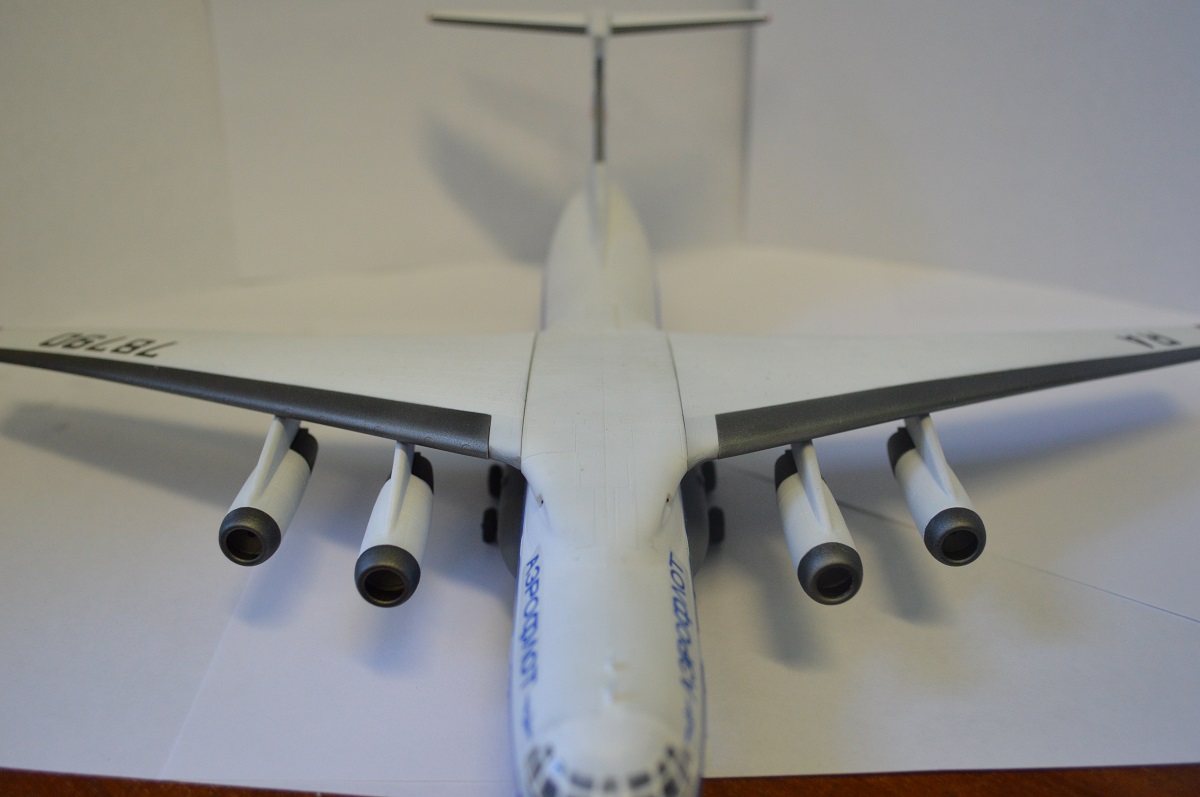 Модель собрана очень аккуратно и это похвально, но даже для изкоробочной сборки нужно обрабатывать швы соединений деталей, перед нанесением декалей необходим глянцевый лак и по-хорошему их ещё приварить не помешает спиртом или уксусом. Ну и с окраской повнимательнее - передние кромки крыльев и передняя часть двигателей ну никак не могут быть такого цвета - ведь не сложно же в интернете посмотреть фото реальных самолётов, Вы всё-таки не игрушку делаете а модель. Про фото уже сказали коллеги, не буду повторяться, а вот остекление очень понравилось.