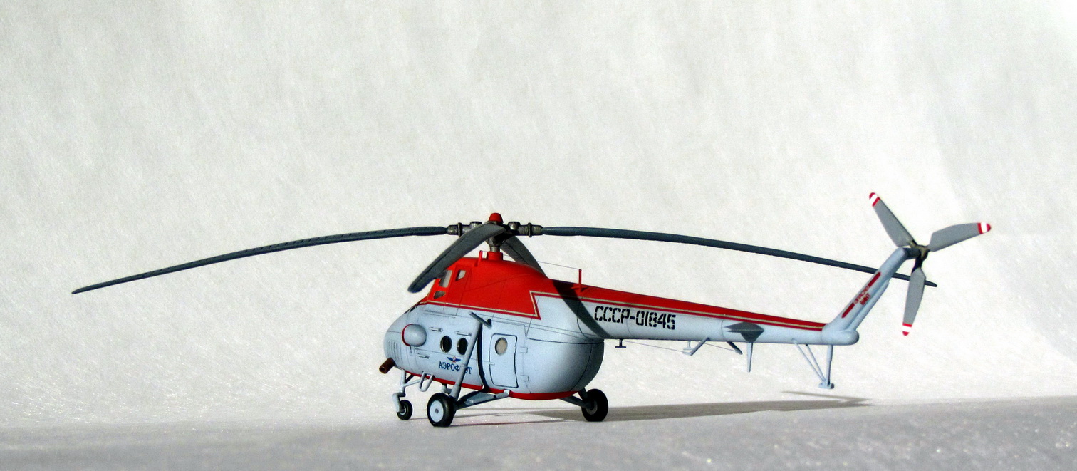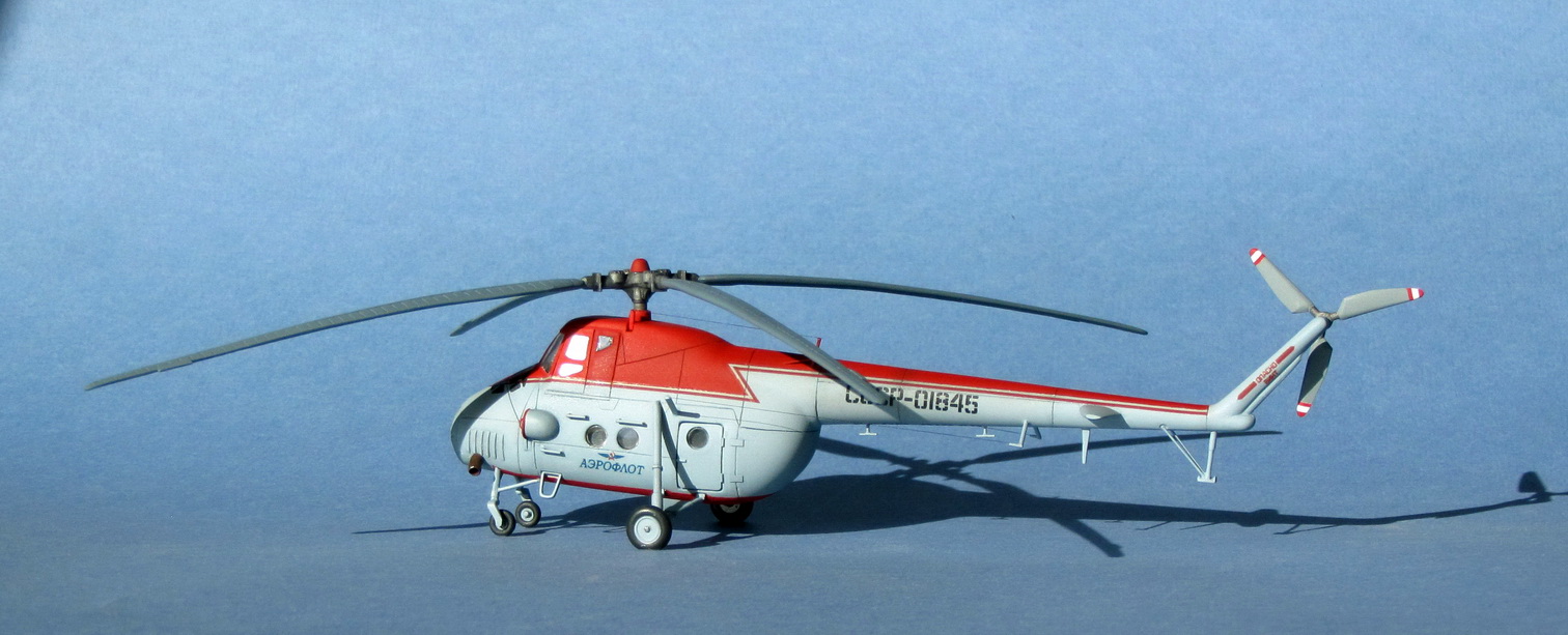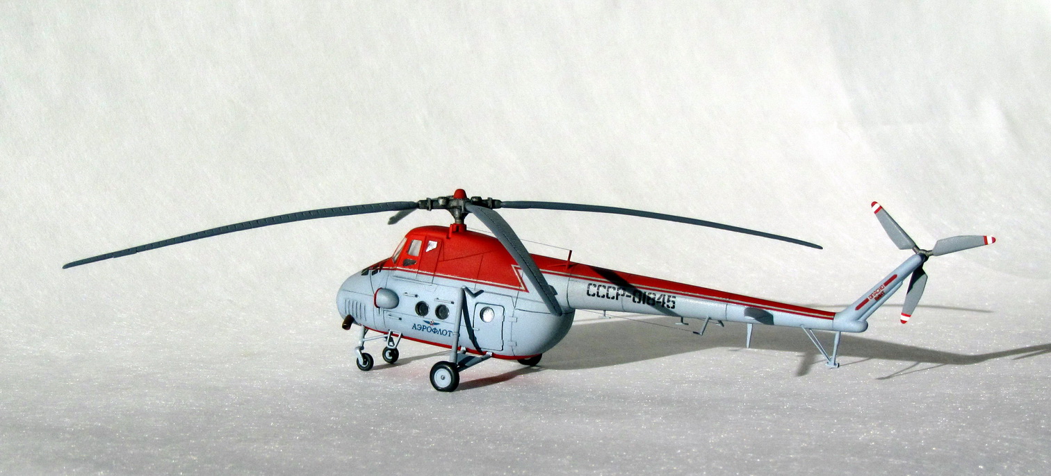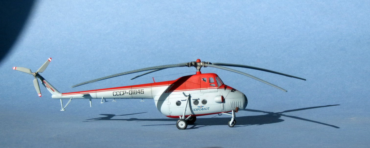 Уже лет 5 лежит на полке L-410 с тонной шпакли, использованной для исправления поперечного сечения, нарезанной расшивкой, переточенными движками (слава Пластикарту - толщина пластика позволяет долго работать напильником), перепиленными нишами шасси, новыми коками винтов, сточенным остеклением до плоских поверхностей и прочим творчеством, но сам себя загнал в тупик с этими доработками... А вот с Ми-4 получилось так - чувство восторга, осколками осевшими где-то в душе с детства, обратилось глубоким разочарованием, когда я год назад открыл подаренную мне коробочку. Неужели этим я так восторгался? Вобщем, друзья, я попытался сделать тот Ми-4, которым был восхищен 30 лет назад, чтобы разочарование сменить на скромное удовлетворение. Ведь можно было дальше править нос, удлинять фюзеляж, отработать лопасти и т.д., но считаю, что вовремя остановился.