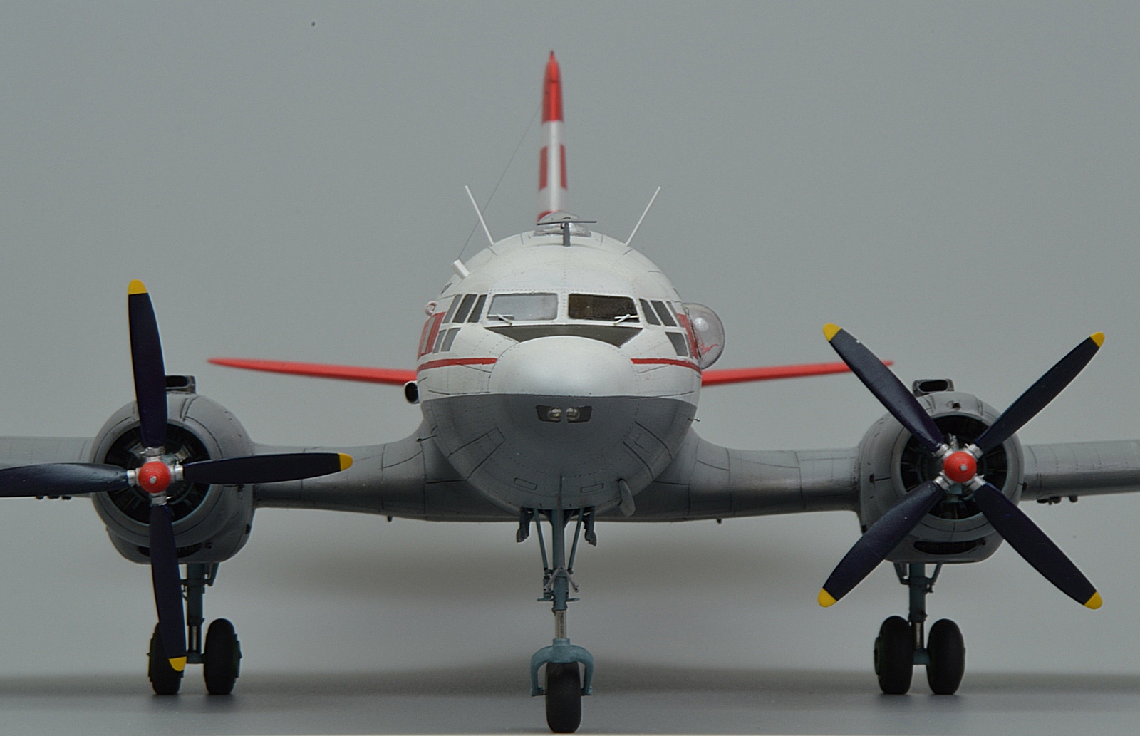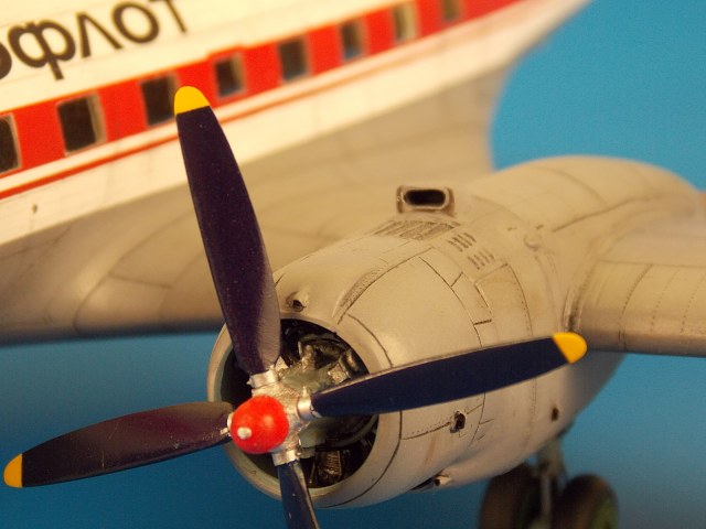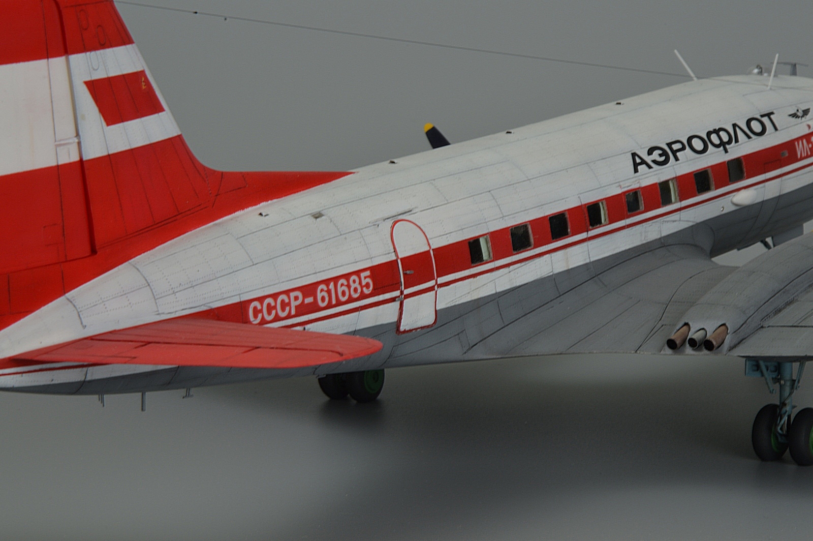 Представляю очередную работу, Ил-14М от Fоx Models. Модель была куплена в одном из интернет магазинов в 2012г. Был приятно удивлён, что появился Ил-14 в моём любимом масштабе. Рассмотрев фото отливок в сети, счёл их вполне достойными. Однако, получив модель, был очень разочарован, и подумал, что никогда больше не открою эту коробку. И всё же, желание иметь в коллекции модель этого легендарного самолёта заставило взяться за работу. Модель отлита из белой смолы, детали имеют значительное количество раковин, от мелкой россыпи до 8 мм. в диаметре. В некоторых деталях присутствует желеобразная субстанция неполимеризовавшейся смолы. Мелкие детали имеют облой и ломаются при попытке его удалить. Некоторые детали просто потеряли форму, и были заменены на самодельные: барабаны основных колёс, стойки шасси, (от носовой взял только вилку). Больше всего проблем с планером. Производитель решил сымитировать обшивку внахлёст. Идея для 72 масштаба, на мой взгляд, крайне не удачная. Результат соответствующий: поверхность выглядит очень грубо и не масштабно, многие участки выглядят как накладные бронелисты, толщина панелей не постоянная, при совмещении половин фюзеляжа, панели не совпадают. Стабилизатор по поверхностям имеет недоливы, зашпатлёван и зачищен. Та же участь постигла весь планер, обшивка внахлёст ошкурена, вновь нарезана вся расшивка и накатана заклёпка, без изменений оставил только нижнюю часть мотогондол. Остекление модели отлито из прозрачной смолы и было заменено на прозрачный листовой пластик. Доработаны двигатели, кабина пилотов. Крылья с мотогондолами, горизонтальное оперение, киль отлиты целиком, что создаёт значительный вес модели и заднюю центровку. Пришлось загнать изрядное количество дроби в носовую часть, чтобы модель не садилась на хвост. Стойки шасси армировал медиглами подходящего диаметра. В декали имеются дефекты красочного слоя и лака, как будто вырвано местами, только бумага. Из декали использовал надписи, бортовые номера, эмблему на киль, остальное накрашено аэрографом через маски. Ложкой мёда можно считать хорошую геометрию модели, только убавил диаметр винтов на 3 мм. Так же просматривается проработка мелочей, видно, что был протектор на колёсах шасси, хорошо сымитирована решётка в верхней части мотогондол. Не сомневаюсь, что первые отливки были гораздо более высокого качества, но мне в этой лотерее не повезло. Борт 61685 закончил свою лётную жизнь как Ил-14 ФК, применявшийся для аэрофотосъёмки. Я воспроизвёл более раннюю версию этого самолёта – 32 местный Ил-14М. Окраска Ганза, Акан, лаки HUMBROL, смывка акварель, тонировка масло. Фары – Эльф. Приятного просмотра!