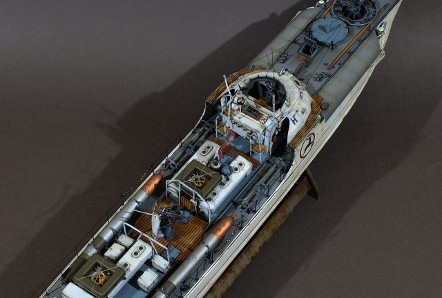 Некоторые вопросы вызывают сколы с потеками ржавчины - корпус-то вроде деревянный у него. И голубые оттенки на палубе и элементах надстроек настораживают.