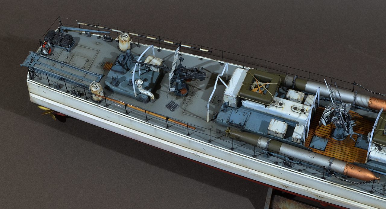 - От себя добавил глубинные бомбы,ограждения из лески 0,14мм,некоторые проволочные ручки.Орудия все подвижные.