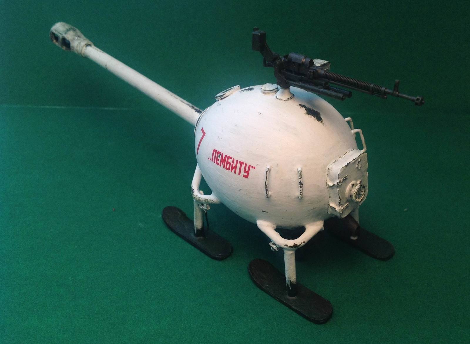 Видимо изобретатель-перебежчик яйцепанцеров, движимый неумолкаемыми голосами в голове, после рейха и сытой Канады опять сбежал, и перебрался в блокадный Ленинград... Где его встретили с распростертыми объятьями и предоставили мощности на Кировском заводе... На деньги собранные Советскими Эстонцами (сегодня это словосочетание даже звучит смешно), был собран этот образец. А на счет двигателя, господа, не парьтесь! Этот яйцетанк таскал за собой на веревочке один из Т-34-85 знаменитой "эстонской" танковой колонны Лембиту...