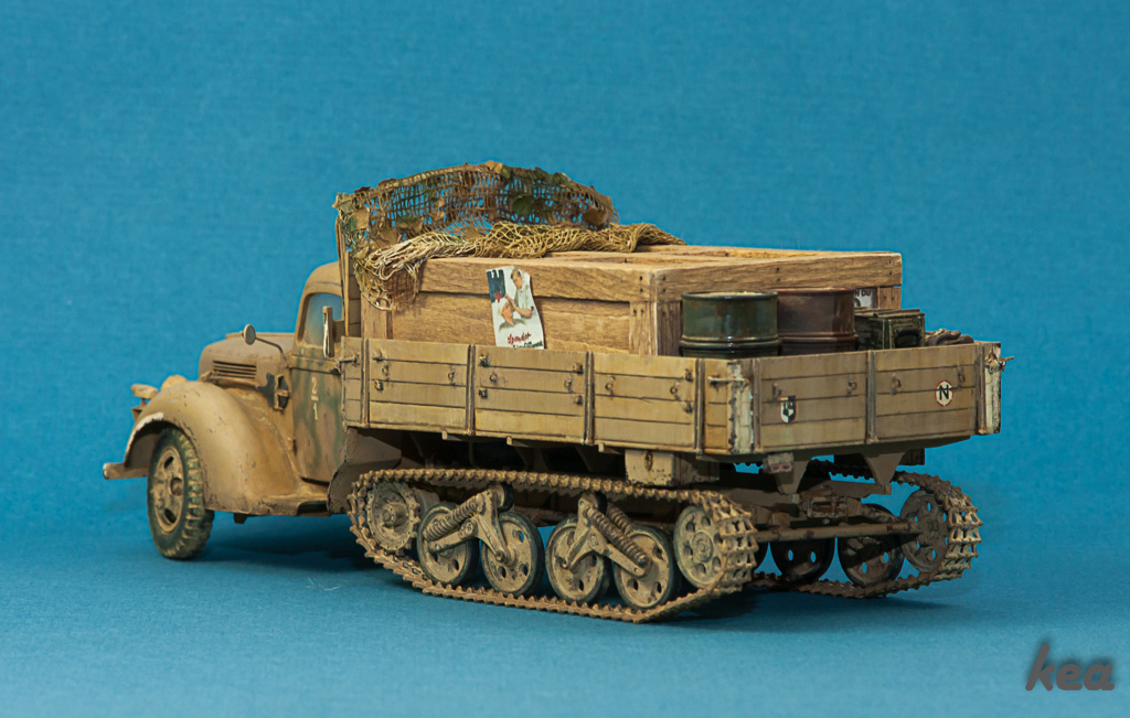 Работа выполнена без привязки к реальному прототипу. Вариант для окраса и маркировок, был взят из инструкции к набору, это - Италия, лето. Предполагается, что грузовик прифронтовой трудяга.