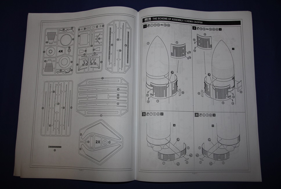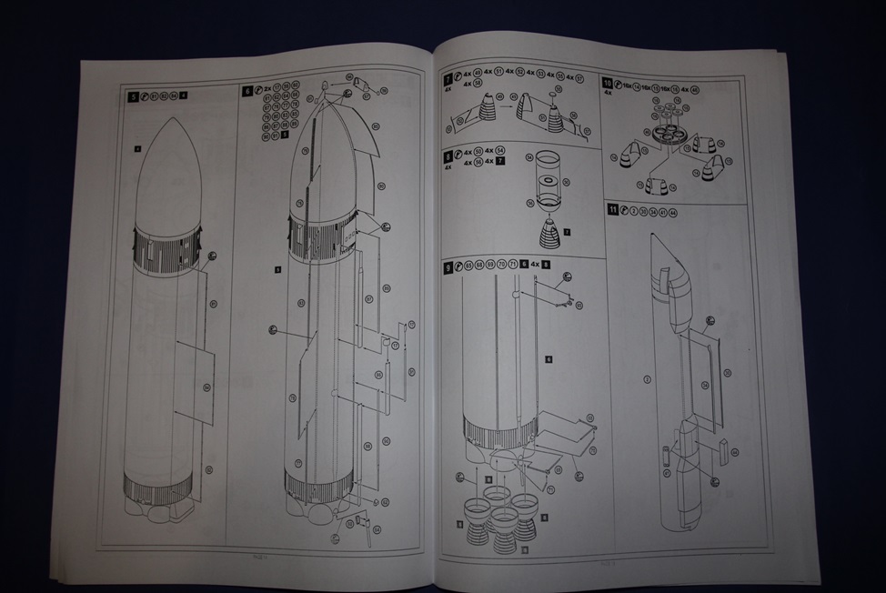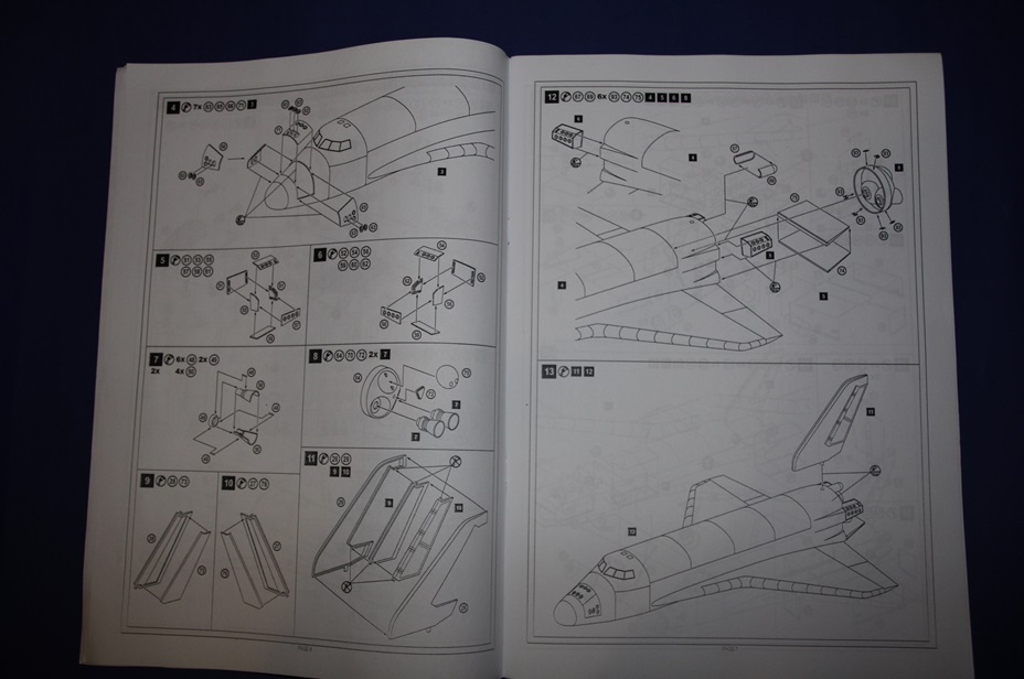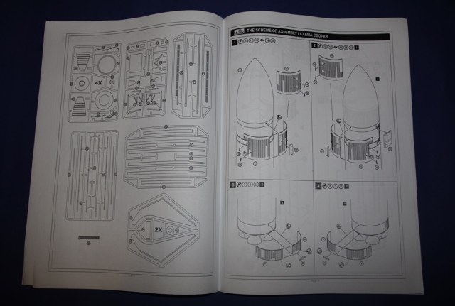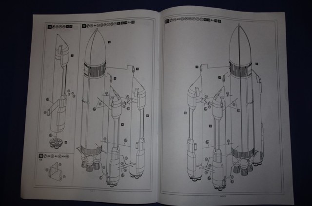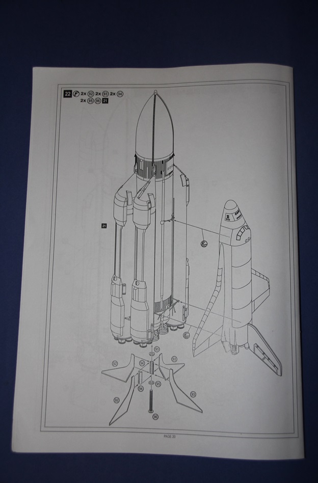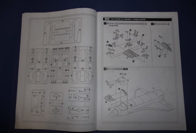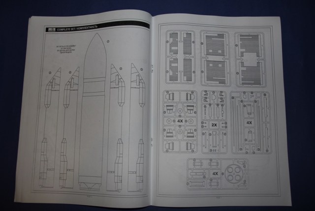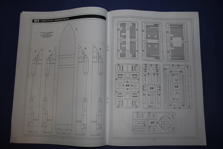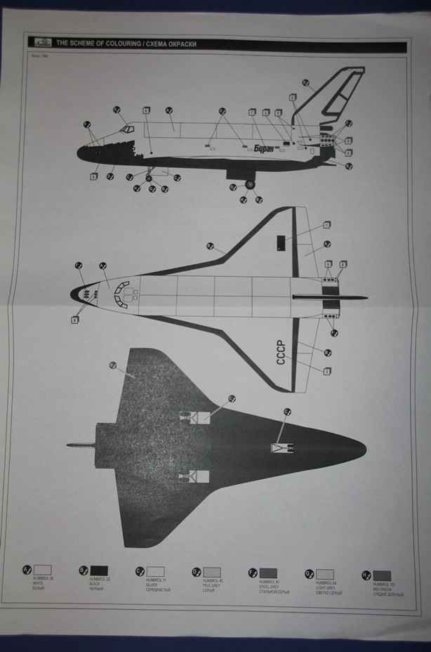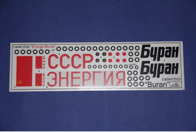 Вскрыв здоровенную коробку (длина под 90 см), обнаружил аккуратно упакованный пакет с литниками, инструкцию, декаль, которая просто валялась ни во что не упакованная (производителю минус), а также крупные части ракетоносителя, завернутые липкой пленкой. Части ракетоносителя и тело челнока отлиты из стекловолокна. Раньше с таким не сталкивался, но качество литья ракетоносителя не впечатлило, придется шлифовать. Сам челнок пролит аккуратно. Главный минус модели - отсутствие расшивки теплоизоляции. Почитав вот эту статью http://www.buran.ru/htm/raskroy.htm, а также прикинув что в масштабе 1/72 шов между плитками должен быть толщиной 0,07 мм, я понял и простил производителя, однако для себя пока что решил расшивку попробую восстановить (как оно на самом деле будет - посмотрим). Литников в комплекте около 40 шт, многие повторяются. Качество литья вполне приличное, обработки потребуется по минимуму. Кстати литье мелких элементов выполнено из смолы. Инструкция подробна, достаточно обстоятельна и в принципе проблем с ней возникнуть не должно. В комплекте идет декаль, воспроизводящая опознавательные знаки Бурана в свой первый и единственный полет, вариант окраски модели предложен также к нему.