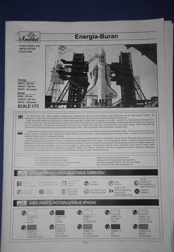 Несмотря на то что я "танкист" и к моделям самолетов всегда относился очень скептически, всегда хотел собрать модель на космическую тематику, ну и чтоб прототип был не забугорный, а наш родной советский. Бегло просматривая предложения по моделям такого рода убедился что модельные фирмы в основном штампуют прототипы MADE IN US. Однако недавно попалась мне на глаза интереснейшая модель от украинской фирмы Amodel, а именно многоразовая транспортная космическая система "Энергия-Буран" в масштабе 1/72 (!).