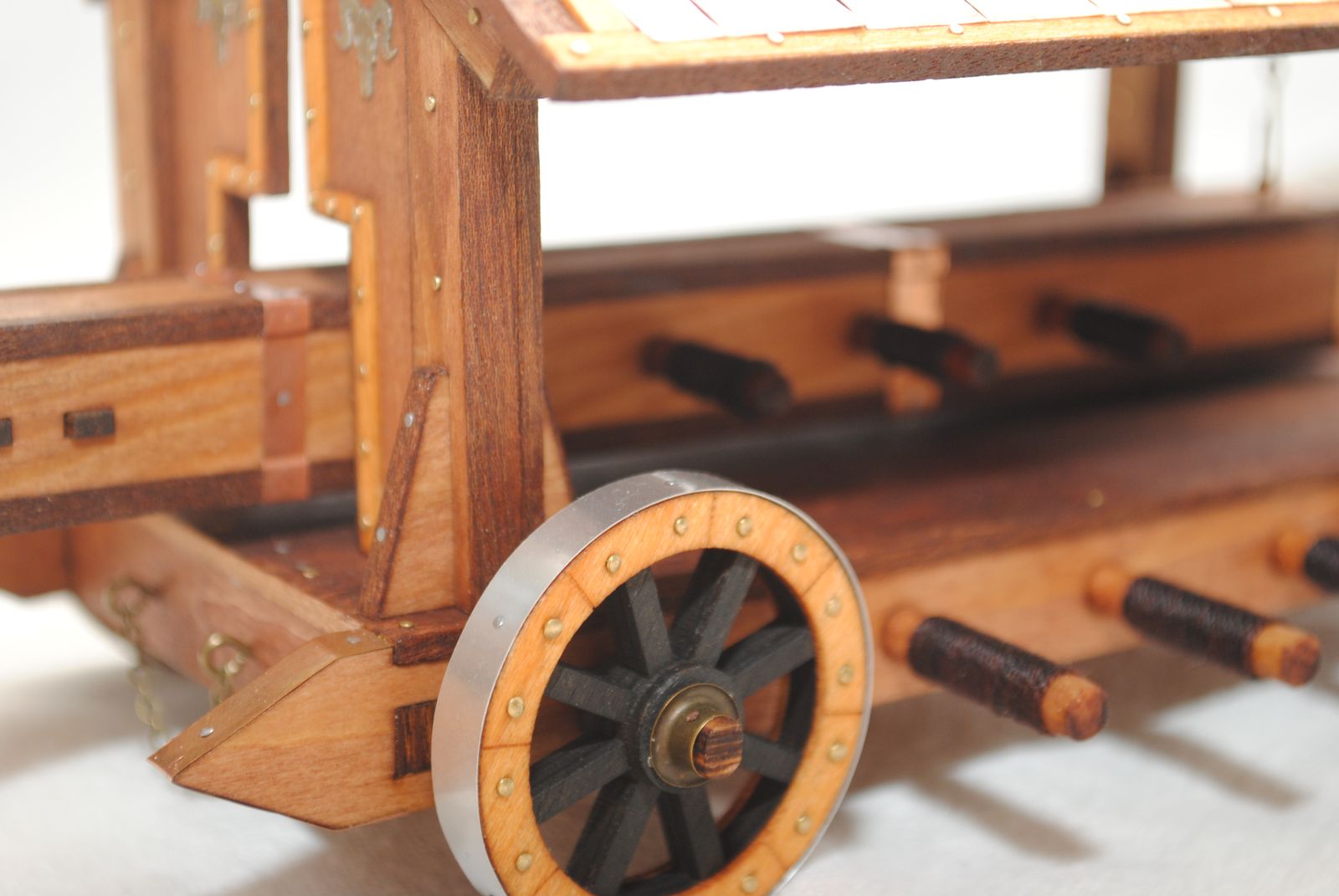 Набор представлял из себя скорее 3Dпазл, нежели другое. Результат доработок и подсказок друзей-коллег перед Вами. Модель делалась в подарок и потому имеет «праздничный нарядный вид». Из доработок – металлочерепица, травление. За помощь в пайке острия удара тарана – отдельное спасибо Андрею Докукину. Как вариант рассматривался и другой удар (можно посмотреть в сказке). Но в силу «декоративности» было принято решение оставить существующий.