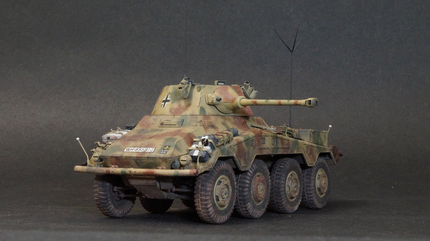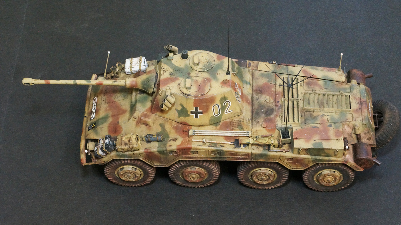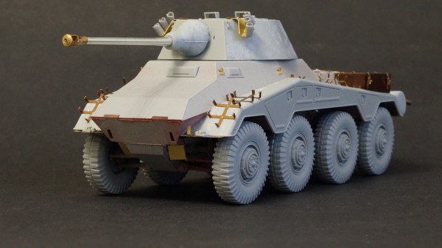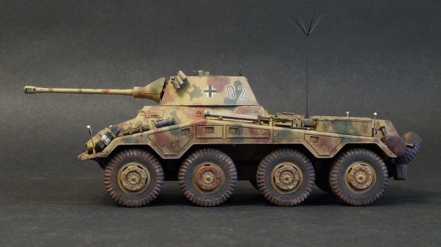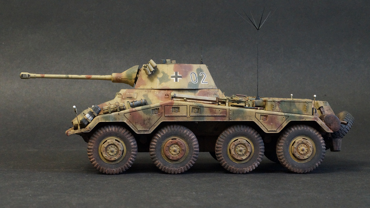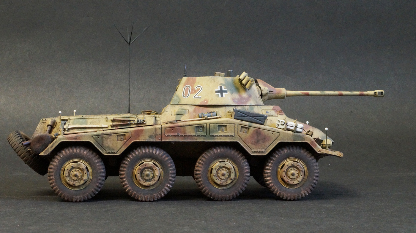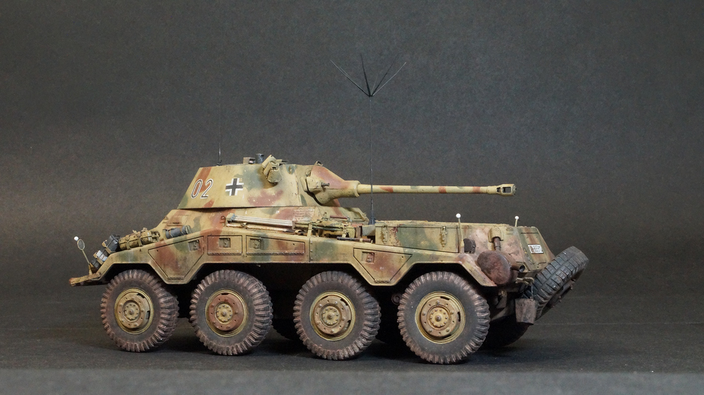 Представляю вам свою очередную немецкую кошку, на этот раз это восьмиколесная Пума. Модель строилась на заказ. Я лично считаю Пуму одной из самых передовых машин того времени, чего стоит восьмиколесная база. Немного истории о машине: Пума создавалась на основе бронеавтомобиля 234 в связи с требованием немецкой армии по усилению вооружения разведывательных бронеавтомобилей. Башня Пумы это переработанный вариант от так и не запущенного проекта VK 1602(Леопард). Бронеавтомобиль использовался немцами в разведывательных подразделениях танковых и моторизированных дивизий с конца 1943 года и вплоть до 1945 года. Выпуск составил примерно 100 штук.