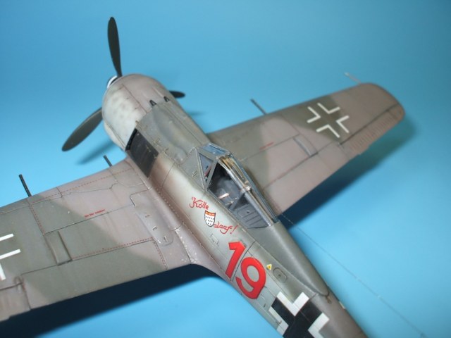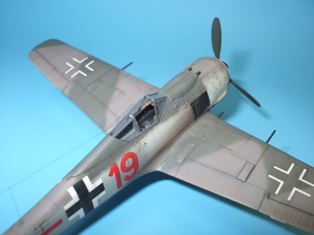 Если честно, фонарь прозрачный и цельный на Fw-190 во всех модификациях это нонсенс! По простой причине, что на верху не переплет или какое либо "устройство для рации", а там шла простая рояльная петля, для того чтоб фонарь расходился при закрывании. Он ведь клиновидный (при виде с верху... Но если у Вас присутствуют документальные фотки, скиньте мне пож., ну уж очень интересно на это глянуть.