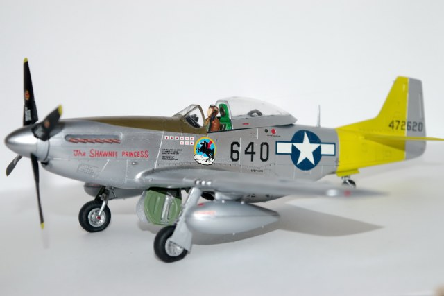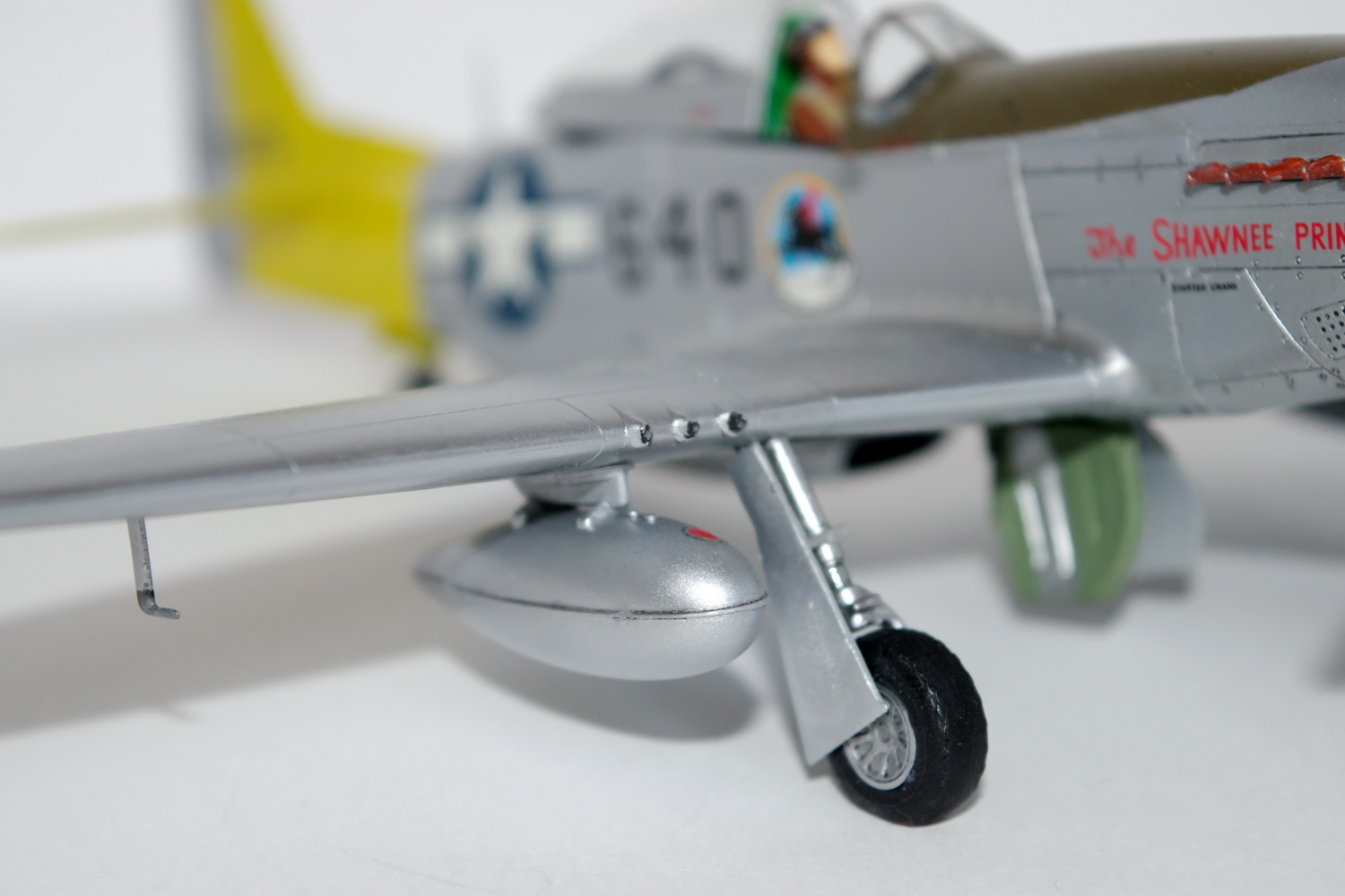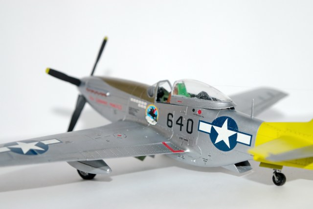 Коллега, у Вас на обоих Мустангах классическая, каноническая ошибка - щитки шасси висят, а закрылки в нейтрале. Заголовник какой то через-чур бирюзовый, а цвет цинк-хромат слишком зеленый, больше желтого в него бы. А вот с желтой краской похоже не повезло. Видимо слишком прозрачная, не укрывистая. Вариант окраски интересный, это изкоробочный? К чему последнее фото? ИМХО - оно не имеет ни какого отношения к представленному борту...
