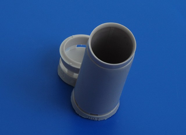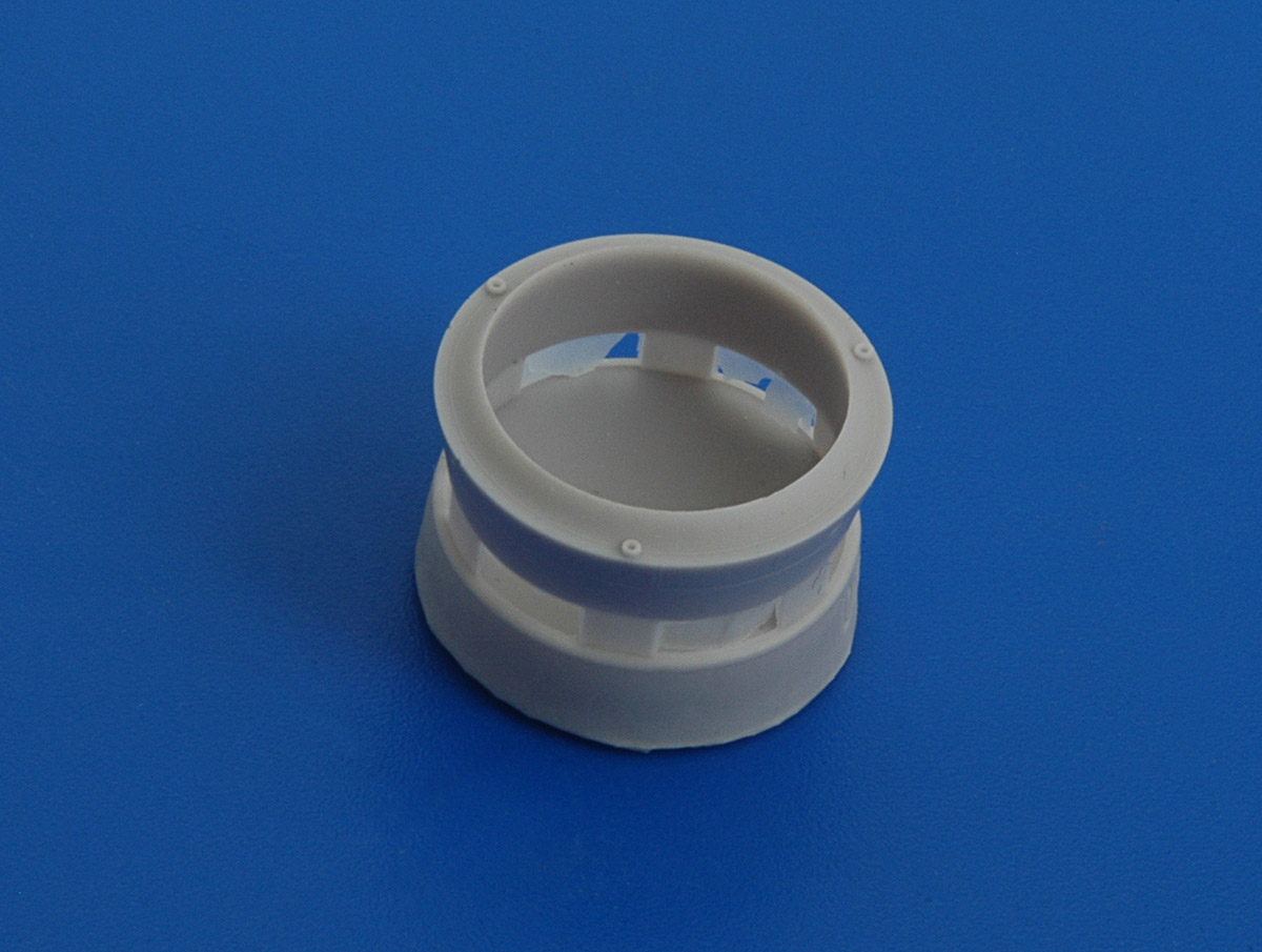 Основными преимуществами АМиго являются возможность позиционирования кольца диффузора, деталировка канала воздухозаборника и правильный профиль обечайки диффузора. Поясняю, профиль стыка обечайки и передней части канала воздухозаборника достаточно сложен и в наборе АМиго показан правильно. Извините, но этого Mini Wirld не дает, судя по фотографиям, все выточено в одну деталь. К тому же, на точеной детали не показаны стыковочные швы внутри канала трубы ВЗ. На смоляной детали они есть, это хорошо видно на фотографии.