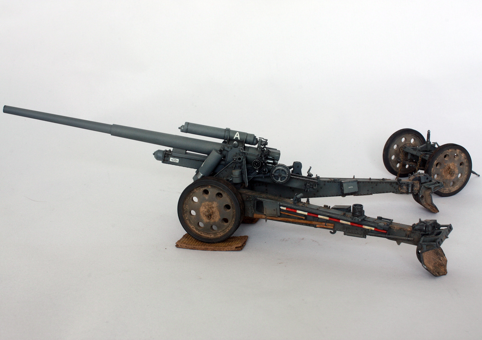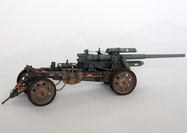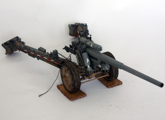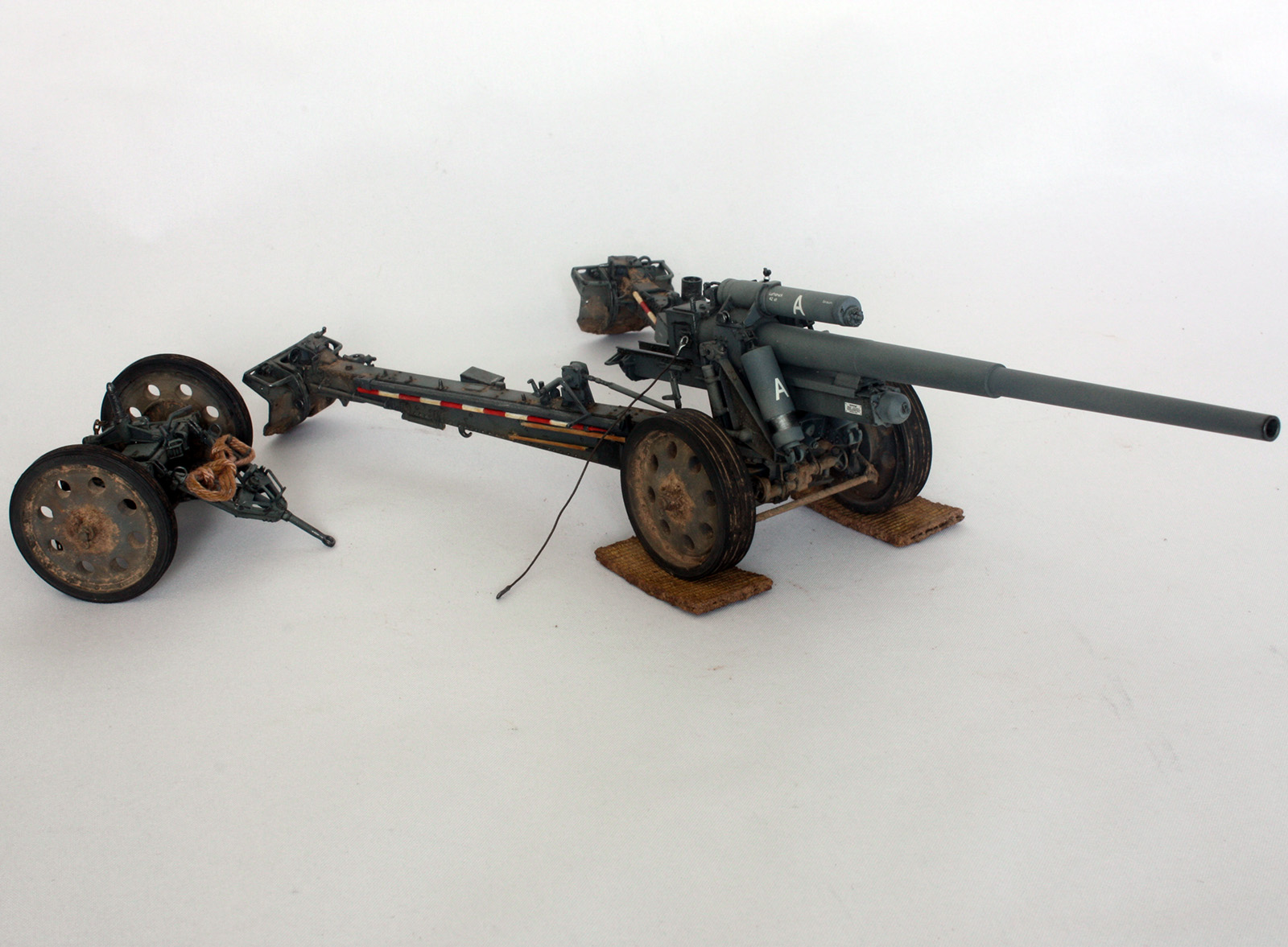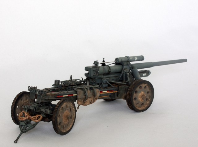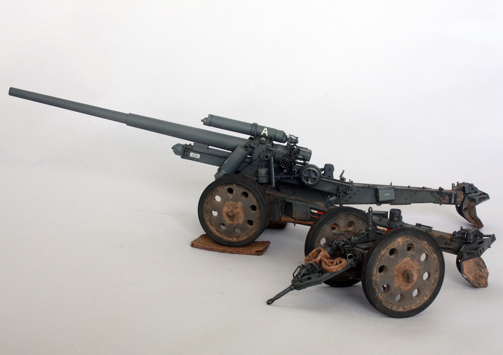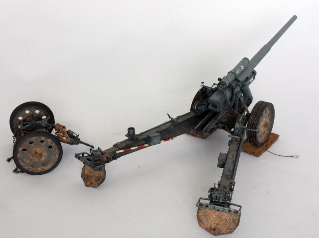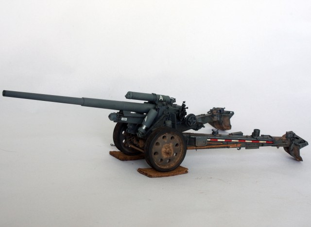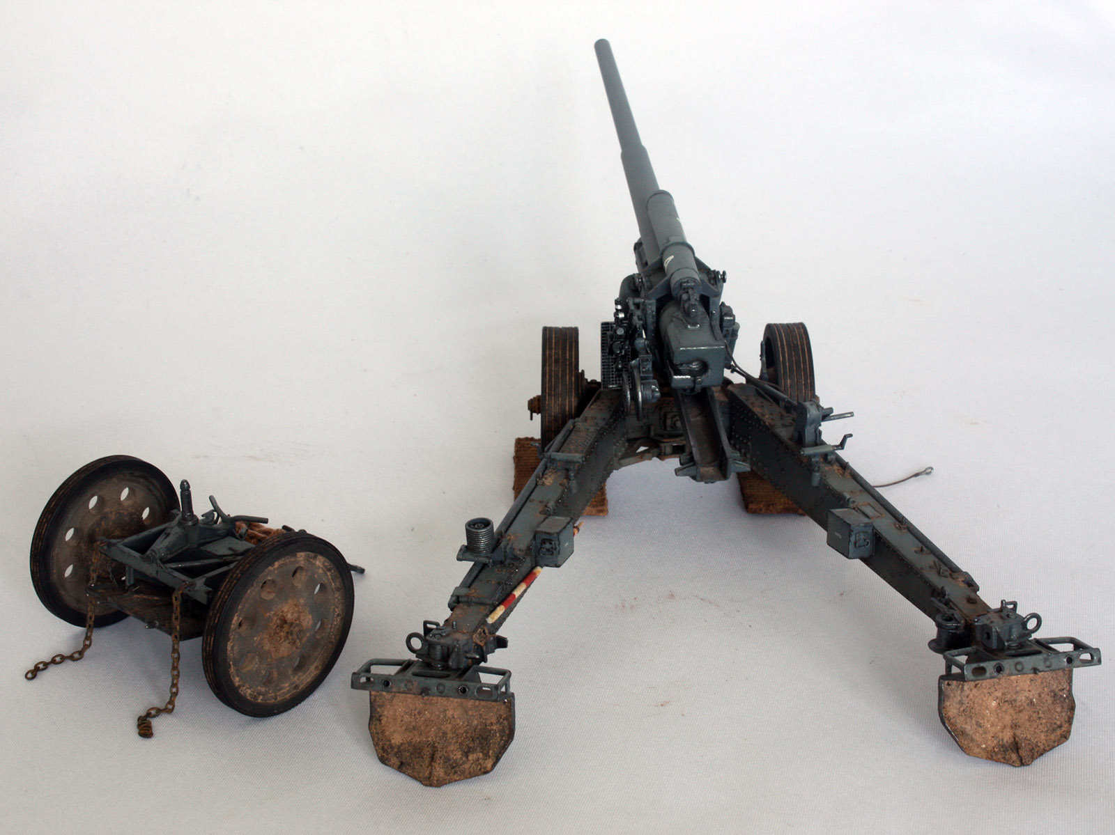 Модель строилась «из коробки» с минимальными доработками, дабы в принципе понять особенности работы с набором для дальнейшей постройки модели гаубицы sFH 150, уже дополненной большим набором фототравления. Основной задачей я поставил себе возможность перевода орудия из боевого положения в походное и изменения горизонтального и вертикального углов наводки, причём с 2 целями: 1 – просто интересно, 2 – я не был уверен, какова будет дальнейшая судьба орудия – в боевом положении на арт.позиции или на прицепе у тягача.