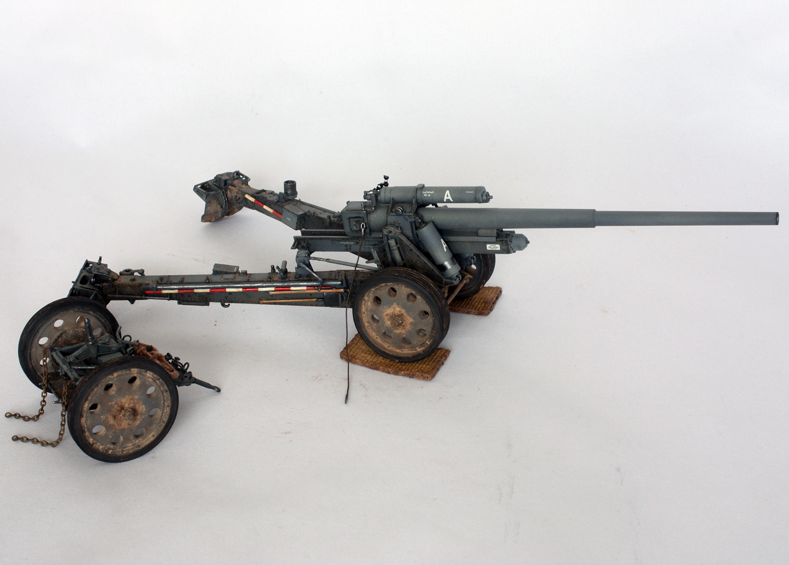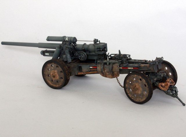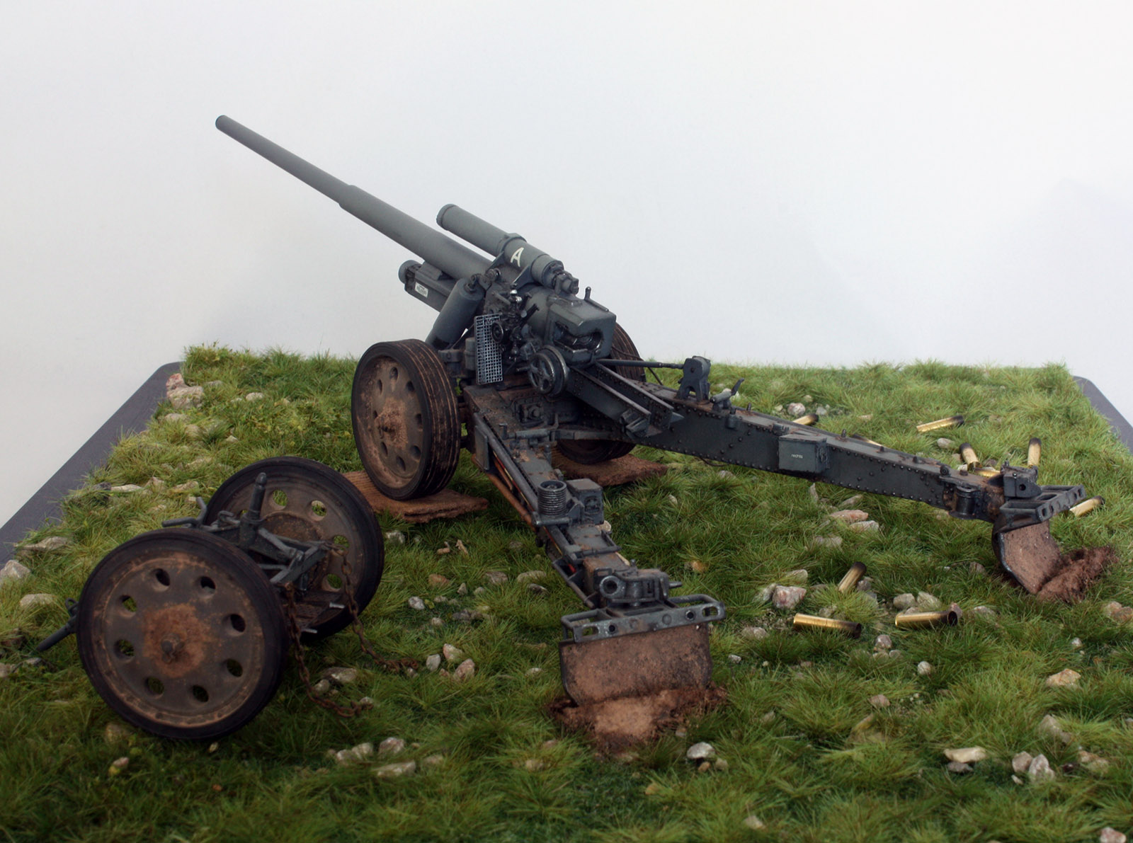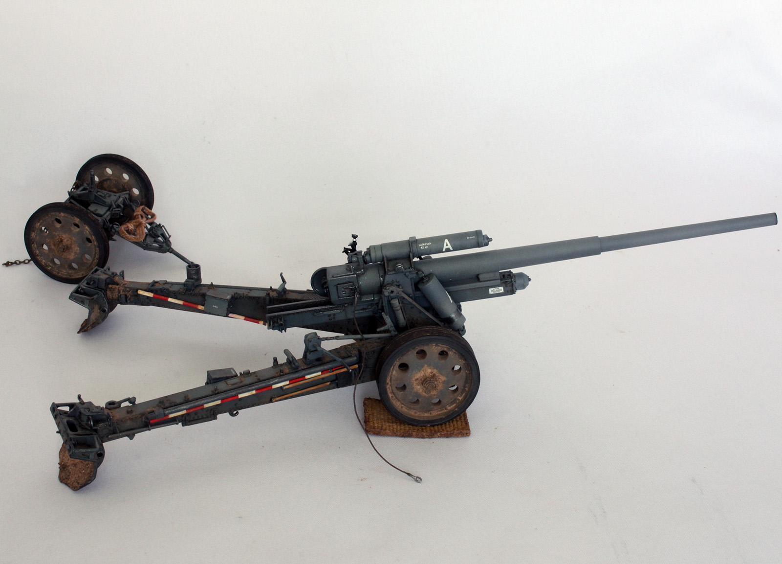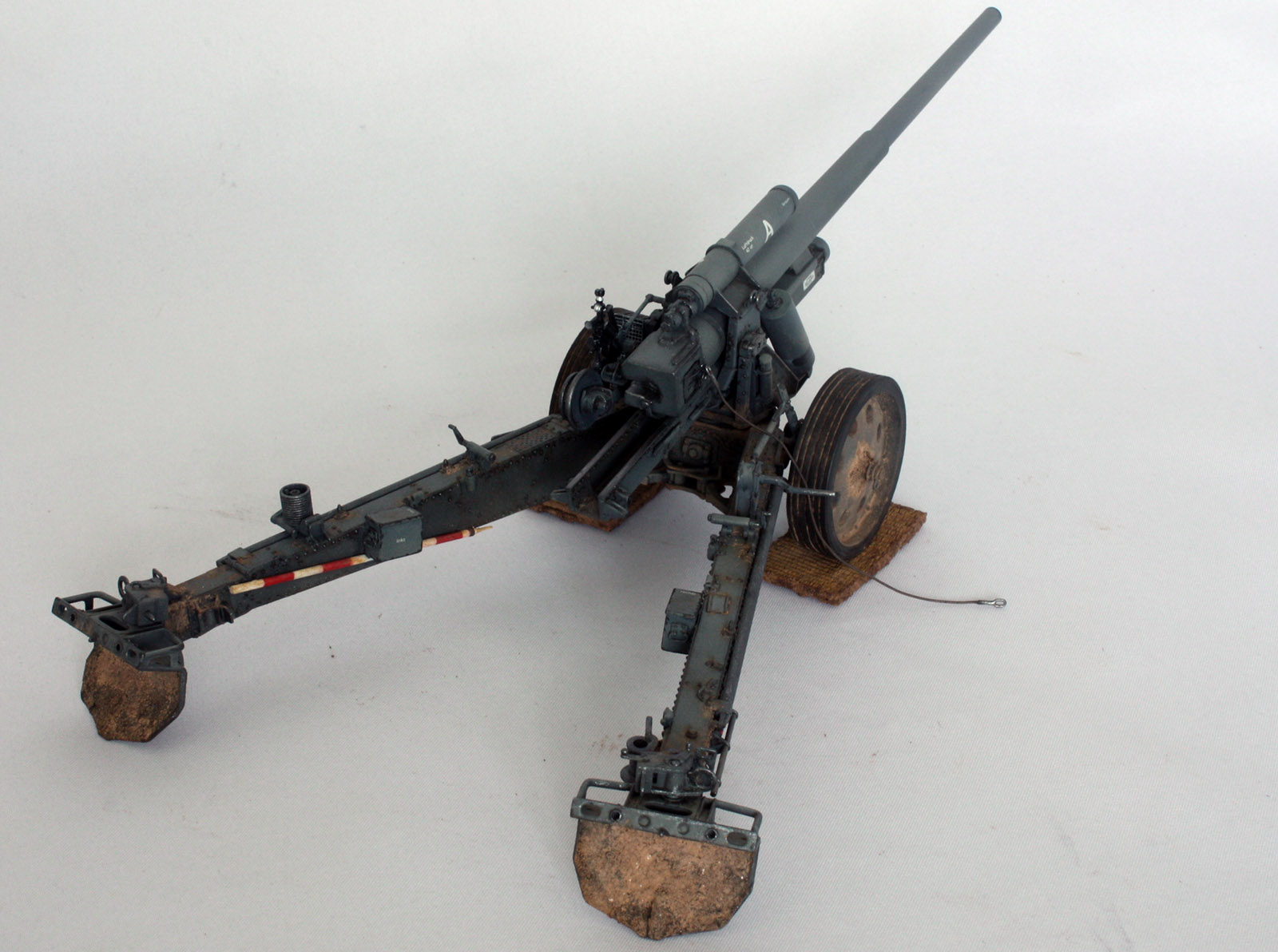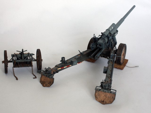 Модель строилась «из коробки» с минимальными доработками, дабы в принципе понять особенности работы с набором для дальнейшей постройки модели гаубицы sFH 150, уже дополненной большим набором фототравления. Основной задачей я поставил себе возможность перевода орудия из боевого положения в походное и изменения горизонтального и вертикального углов наводки, причём с 2 целями: 1 – просто интересно, 2 – я не был уверен, какова будет дальнейшая судьба орудия – в боевом положении на арт.позиции или на прицепе у тягача.