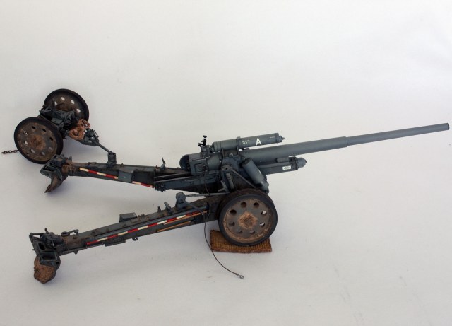 Александ, да, к сожалению с расчётом не особо вышло, поэтому это в общем-то пока просто модель пушки, собственно поэтому она и не в диорамах, фотографии с подставкой выложил как раз чтобы показать, как она будет храниться в итоге, и услышать мнение, как она смотрится на таком основании.