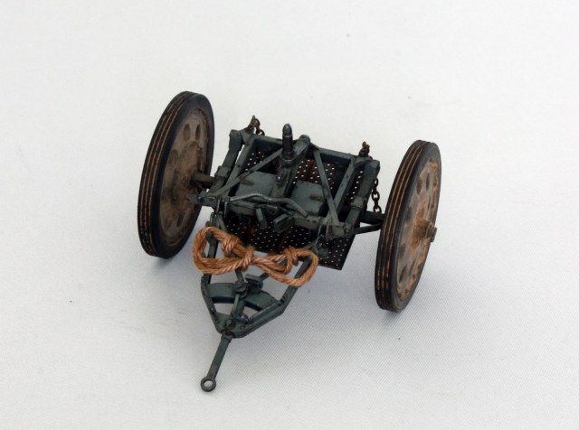 Снаряды же транспортировали например в деревянных укладках, аналогичных тем, в которые укладывались снаряды лёгкой гаубицы 10,5 cmle.FH. Можно попробовать взять их из наборов к этой гаубице, но как они подойдут – не знаю, опять же.