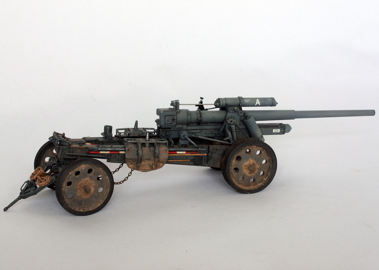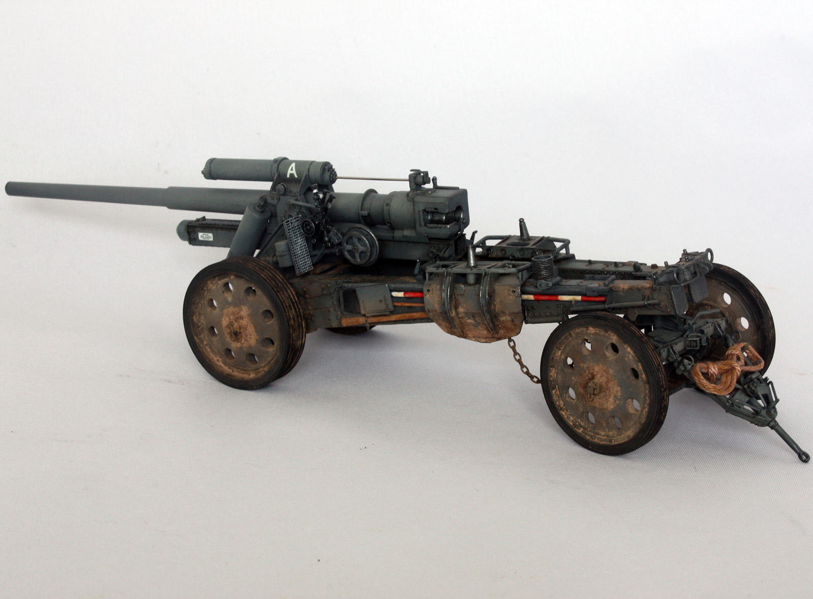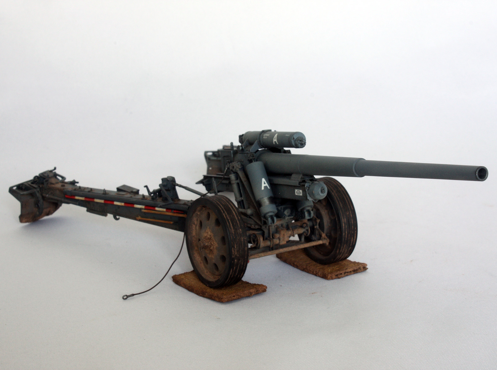 Дать оценку пушке весьма сложно: выпуск в 1500 – это довольно-таки скромно для орудия такого класса. Видимо, всё же для своей большой массы она была не достаточно мощной как орудие для обстрела укреплённых оборонительных линий противника, и не достаточно манёвренная как противотанковое средство или орудие непосредственной поддержки, кроме того, была дорога и трудоёмка в производстве. Этому орудию трудно даже подобрать сравнительный аналог среди артсистем, состоявших на вооружении СССР: все советские орудия аналогичные по массе – значительно превосходили её по могуществу снаряда и имели больший калибр. Меньшего калибра и массы – конечно закономерно проигрывали и в дальности стрельбы и могуществе снаряда. Вообще, к ней ближе всего пушка, о которой я в принципе узнал в ходе работы над этой моделью: 107-мм дивизионная гаубица М-60 образца 1940 года, выпущенная в количестве аж 139 (!!!) штук :))) . Её 10,5 cmsK 18 превосходила в дальности стрельбы примерно на километр, имея фугасный снаряд легче примерно на 2 кг. И в 1,5 большую массу.