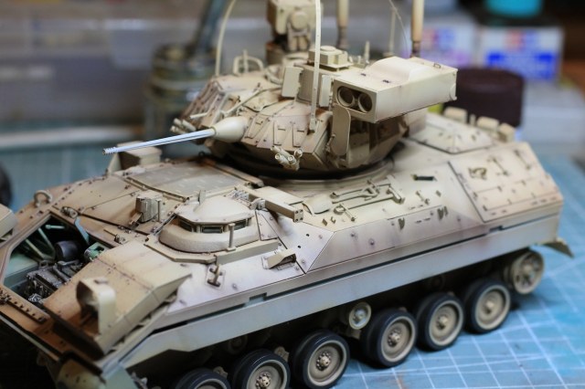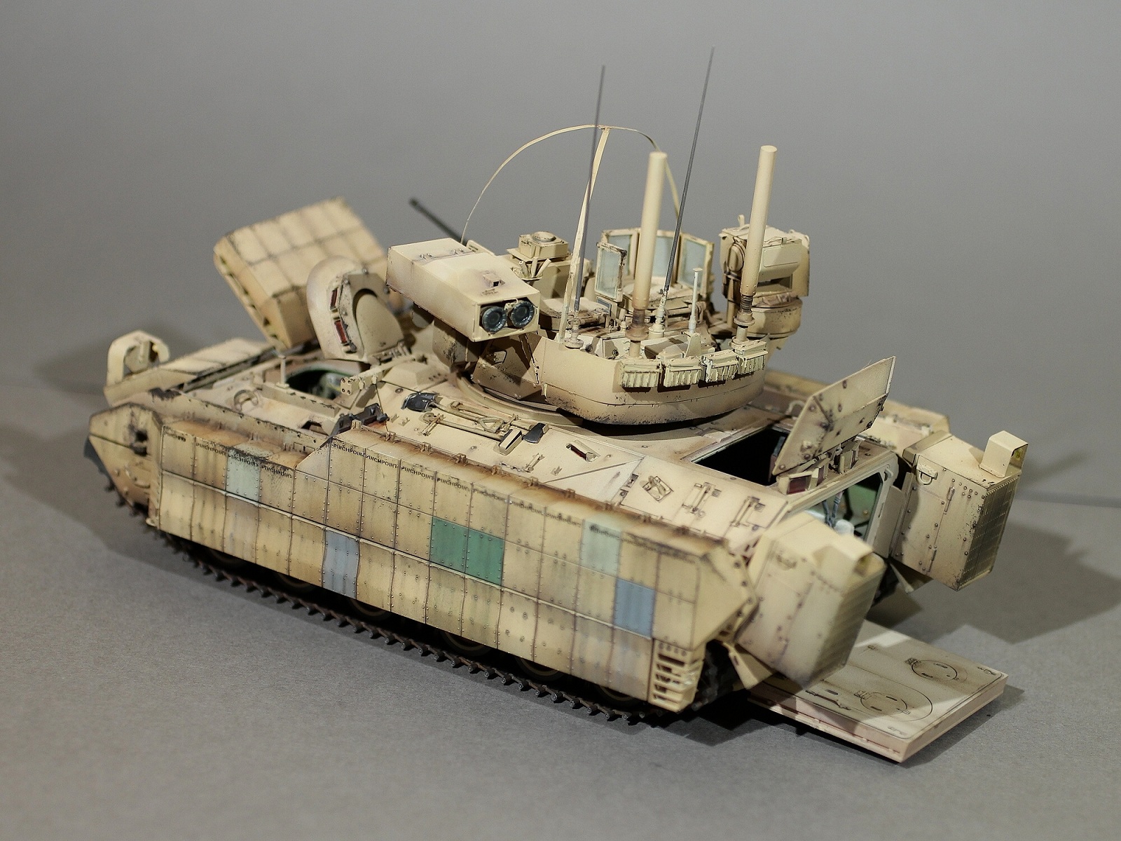 Таких аппаратов не много в сети, но если делать просто песочный, он был бы очень скучным и был бы еще одним сотым бредли. А вот пример работы с экранами дз http://www.meng-model.com/cn/new.php?id=402