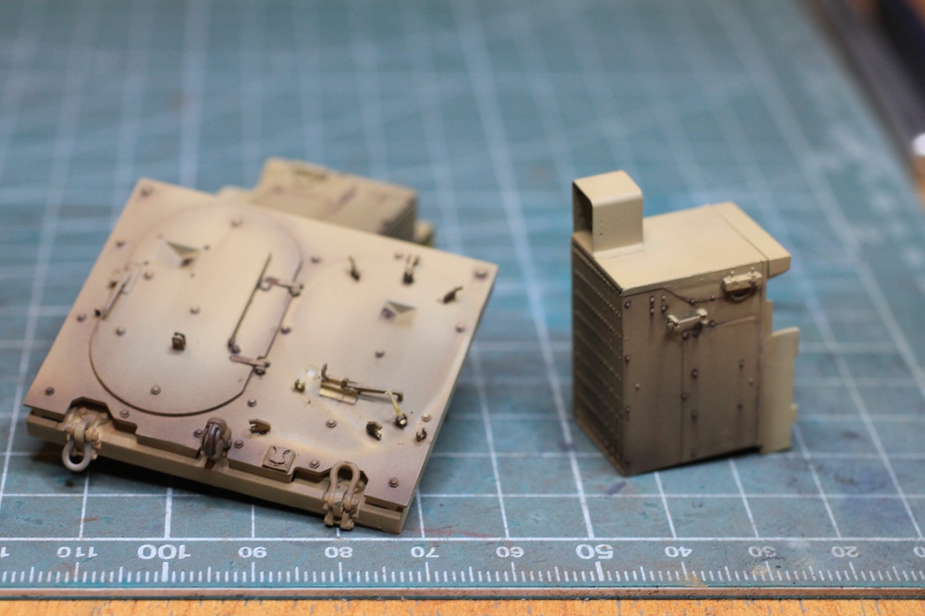 Покраску пришлось разбить на множество этапов. Первым был интерьер, потом нижняя часть корпуса и верхняя. Боковые экраны, люки и мелочевка красились так же отдельно. В меру сделал загрязненным, не много сколов, и конечно тонировка средствами АК и Аммо. Немногопигментов.