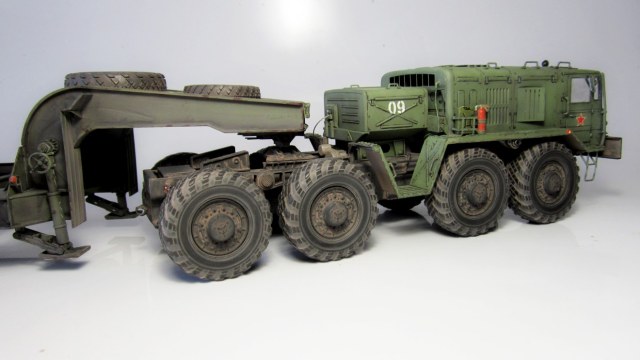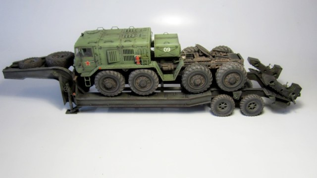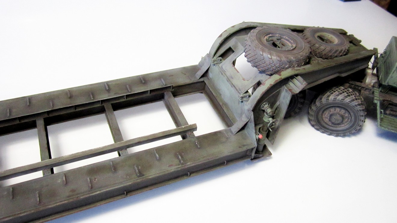Да, 72-ка и 55-ка на фото - просто для "оживления" картинки. Вообще, "агрегат" получился довольно громоздким. Теперь думаю, куда его пристроить. Вариант, когда тягач "сам себя везет" подсмотрел на одном из фото. Хотел так и сделать. Но т.к. подвеска неподвижна, одна пара колес "зависает" в воздухе, что мне не понравилось. От такого варианта отказался, но пару фото таких сделал.