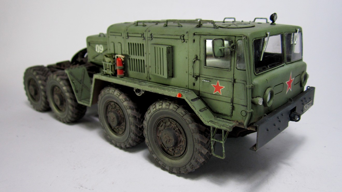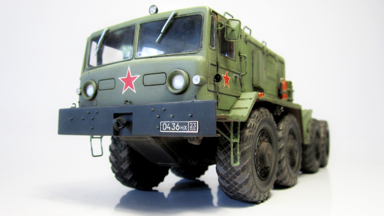 Представляю Вашему вниманию завершение одного из своих "долгостроев". Модель мне досталась в подарок от друга в состоянии "крупноблочной" собранности. Рама тягача была даже покрашена в базовый (он же черный). Ввиду некоторых обстоятельств, которых уже не помню, модель сразу собрана не была и несколько лет пропылилась у меня на полке. Но вот дошли руки и до нее.