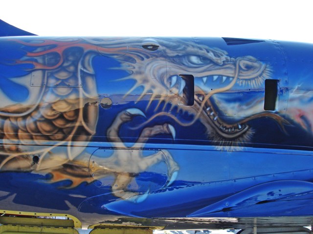 Конечно, в аэрографии поупражнялись изрядно, но вот может ли этот борт подниматься в небо? Позволено ли ему? Не видно ни каких знаков регистрации, ни номеров, ни гербов, ни ОЗ... В таком виде - самолет лишь статичный экспонат, произведение искусства. :-)))