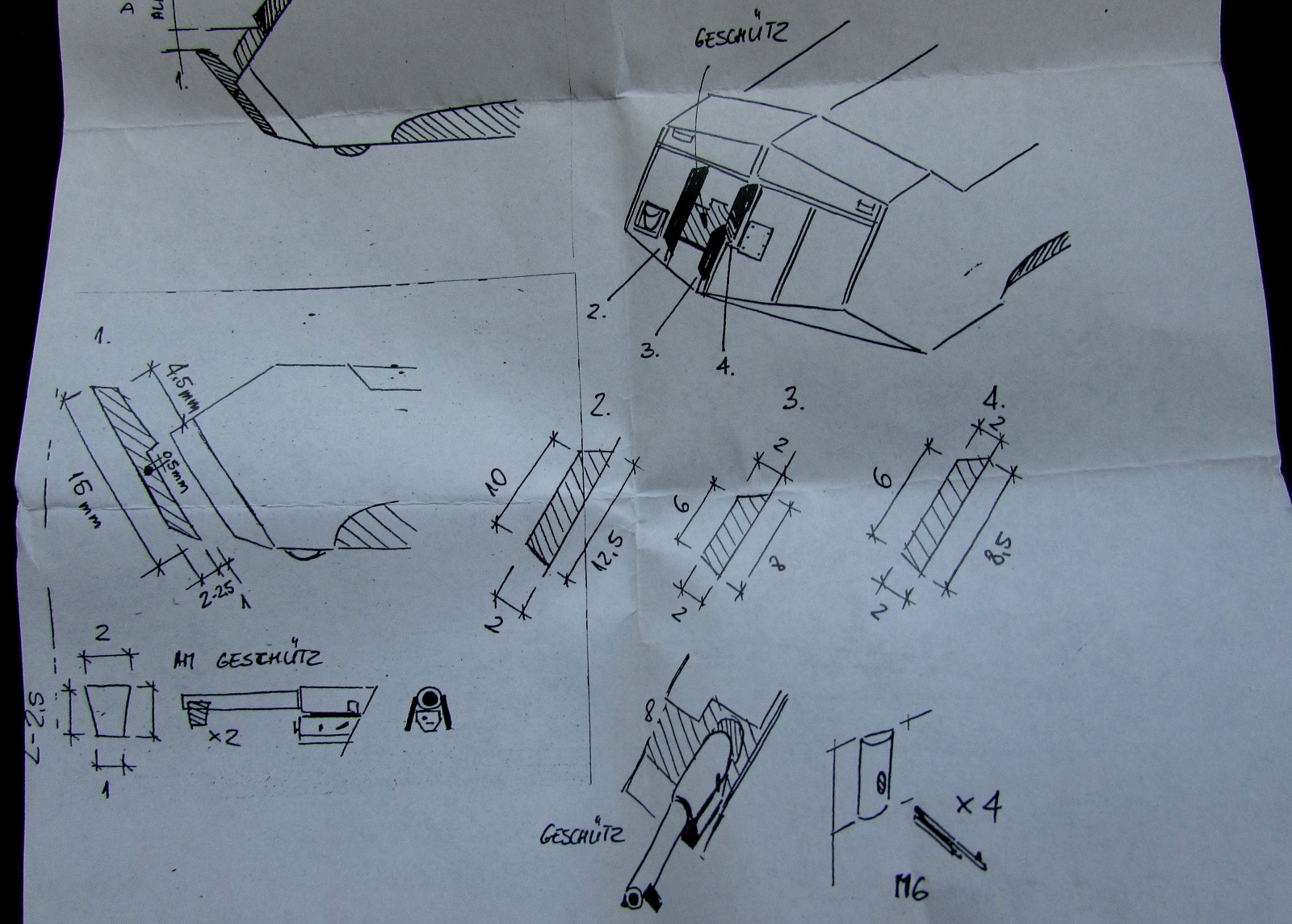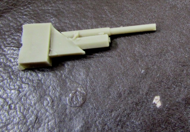 Моя ошибка. Не посмотрел внимательно на инструкцию. Характерные "Уши" на пушку предлагается вырезать из прилагающегося тоненького листа пластика. Но поскольку так получится убого, лучше реально заказать пушку от First to Fight
