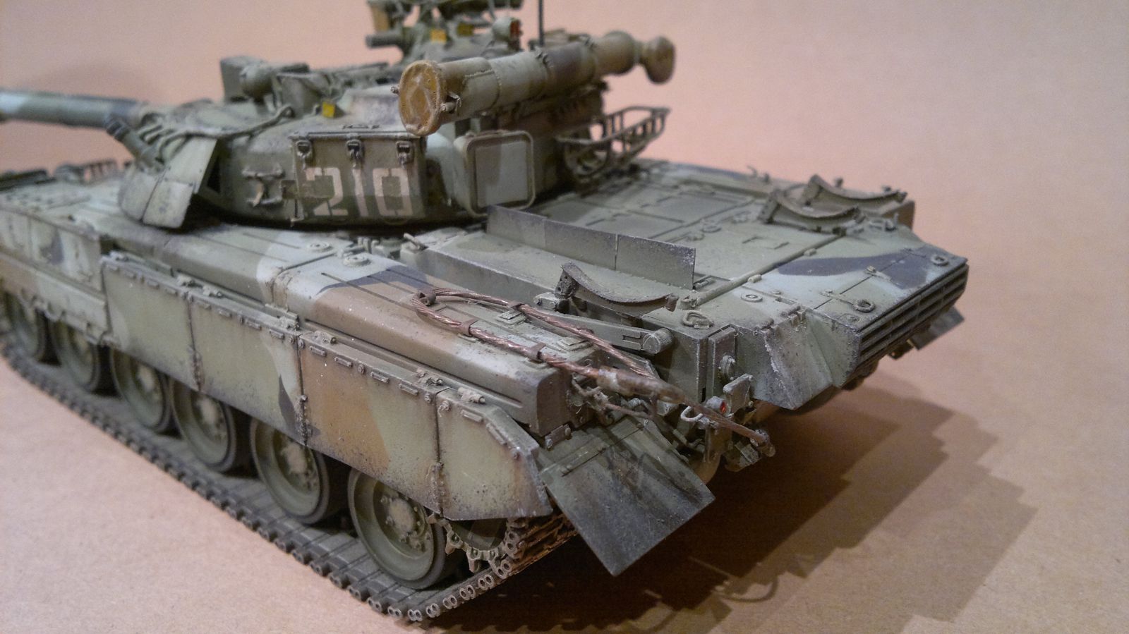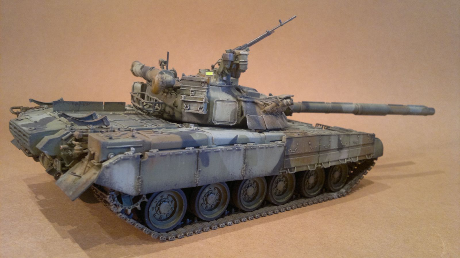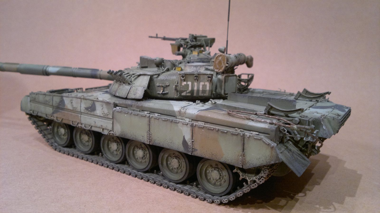 Приветствую коллеги! Вот и закончил я свой долгостройный запил! Много хочется сказать об исходнике. Все вы его знаете. Ну да ладно будем надеяться , что когда нибудь сделают ремейки в более качественном исполнении всех машин до Т90 ставской эпохи от звезды! Собирал без каких либо допов с помощью русской смекалки и такой то матушки! Кое что победить так и не смог. В частности шов на стволе орудия таки вылез после покраски. Кое что даже не пытался из за кривой геометрии данной производителем. Не стал делать наплывы по обеим сторонам смотровых приборов мехвода из за неправильной геометрии лобовой бронеплиты. И извините меня не хватило сил на гребни траков , оставил родное. Может что то получидось и грубовато. Модель строилась с большими перерывами в силу сложившихся обстоятельств закончил благодаря отпуску.Но в целом результатом доволен! На полке стоит еще один красавец. Красил акрилом от тамии. Визеринг миг и масло. Немного пигментов от мастер пигмент. Пылить и пачкать не стал. Будем считать, что танк недавно отмыли. Какого либо прототипа нет. Образ собирательный по мотивам. Цель была сделать чисто полочную модель. Подставку еще не придумал. И так желаю приятного просмотра! P.S. Краску с триплексов убрал, фото добавил.;-)