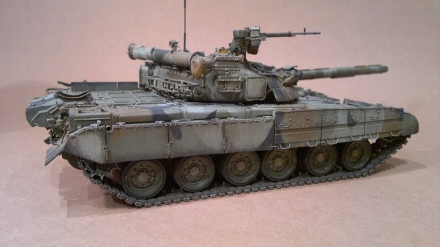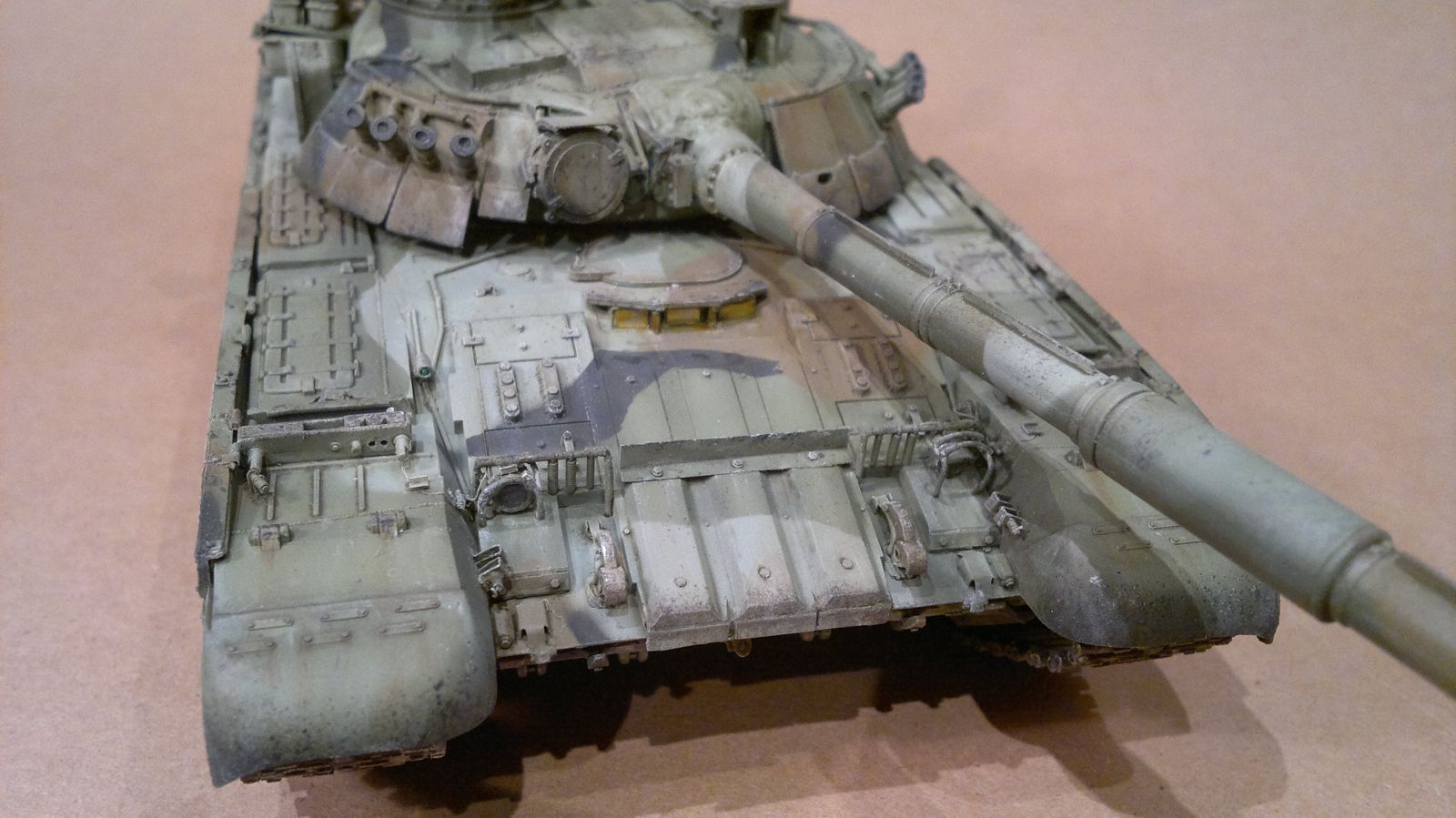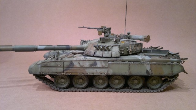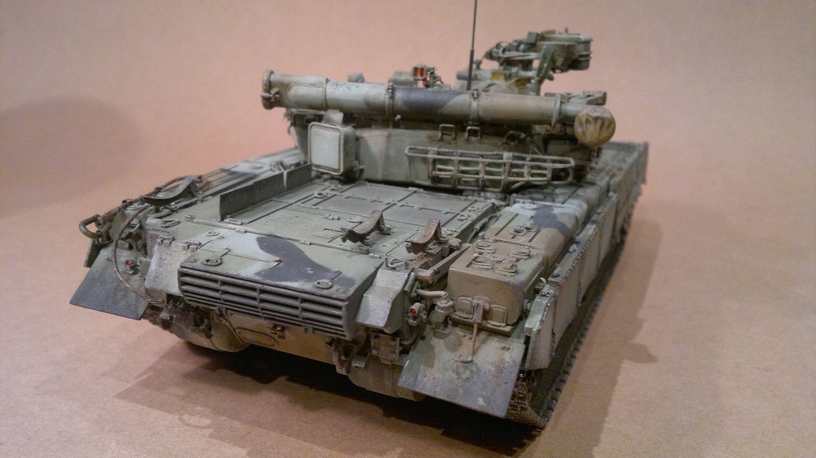 Приветствую коллеги! Вот и закончил я свой долгостройный запил! Много хочется сказать об исходнике. Все вы его знаете. Ну да ладно будем надеяться , что когда нибудь сделают ремейки в более качественном исполнении всех машин до Т90 ставской эпохи от звезды! Собирал без каких либо допов с помощью русской смекалки и такой то матушки! Кое что победить так и не смог. В частности шов на стволе орудия таки вылез после покраски. Кое что даже не пытался из за кривой геометрии данной производителем. Не стал делать наплывы по обеим сторонам смотровых приборов мехвода из за неправильной геометрии лобовой бронеплиты. И извините меня не хватило сил на гребни траков , оставил родное. Может что то получидось и грубовато. Модель строилась с большими перерывами в силу сложившихся обстоятельств закончил благодаря отпуску.Но в целом результатом доволен! На полке стоит еще один красавец. Красил акрилом от тамии. Визеринг миг и масло. Немного пигментов от мастер пигмент. Пылить и пачкать не стал. Будем считать, что танк недавно отмыли. Какого либо прототипа нет. Образ собирательный по мотивам. Цель была сделать чисто полочную модель. Подставку еще не придумал. И так желаю приятного просмотра! P.S. Краску с триплексов убрал, фото добавил.;-)
