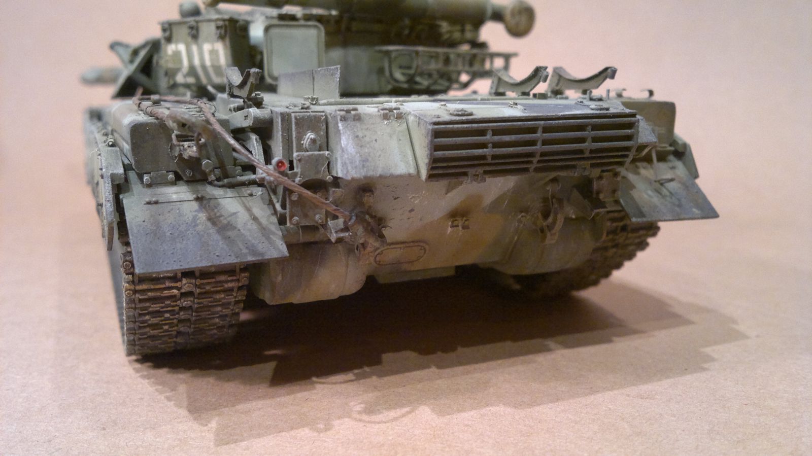 - блоки ДЗ на башне приклеены, как дает "Звезда", а должны быть под более острым углом и резиновые "лопухи" на них немного загнуть вниз (провис) - будет совсем другой вид;