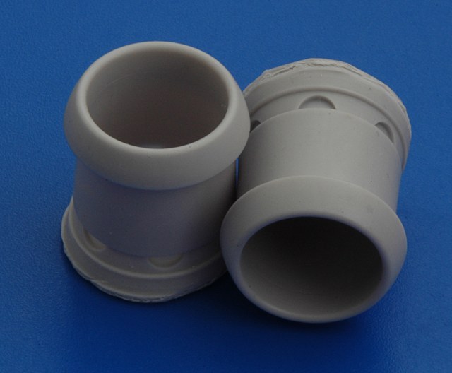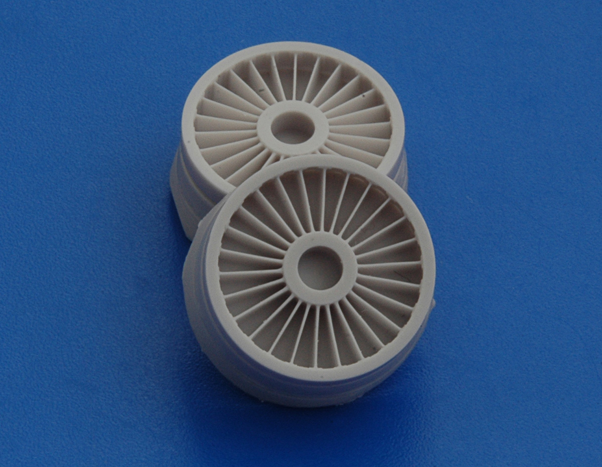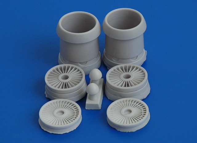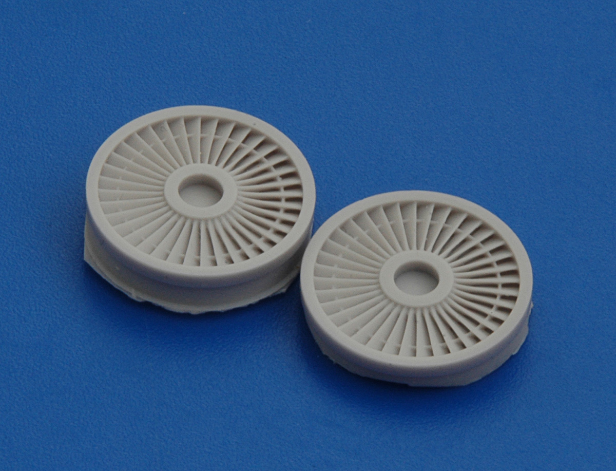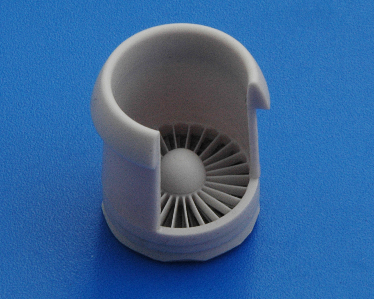 Набор состоит из семи отливок полиуретановой смолы серого цвета и инструкции по сборке. Все это упаковано в прозрачный блистер. Входное устройство каждого двигателя собирается из четырех частей. С деталью ВНА (RP02) следует быть предельно аккуратным. Я бы порекомендовал отделять от литника мелкой пилкой, не прилагая усилий к самим лопаткам, их очень легко повредить. Деталь первой ступени компрессора (RP03) можно оставить на литнике в силу его маленького размера. Все детали отлиты очень качественно, смола в обработке напоминает полистирол, в сборке все очень просто и приятно.