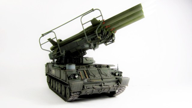 Набор всем известный. Собрана модель из коробки. Делал подвижными кронштейн крепления ракет "по походному" и хомуты на нем, но все погубила описанная выше "авария", пришлось крепить "наглухо". Какой-либо привязки к конкретному образцу не имеет.
