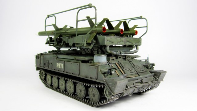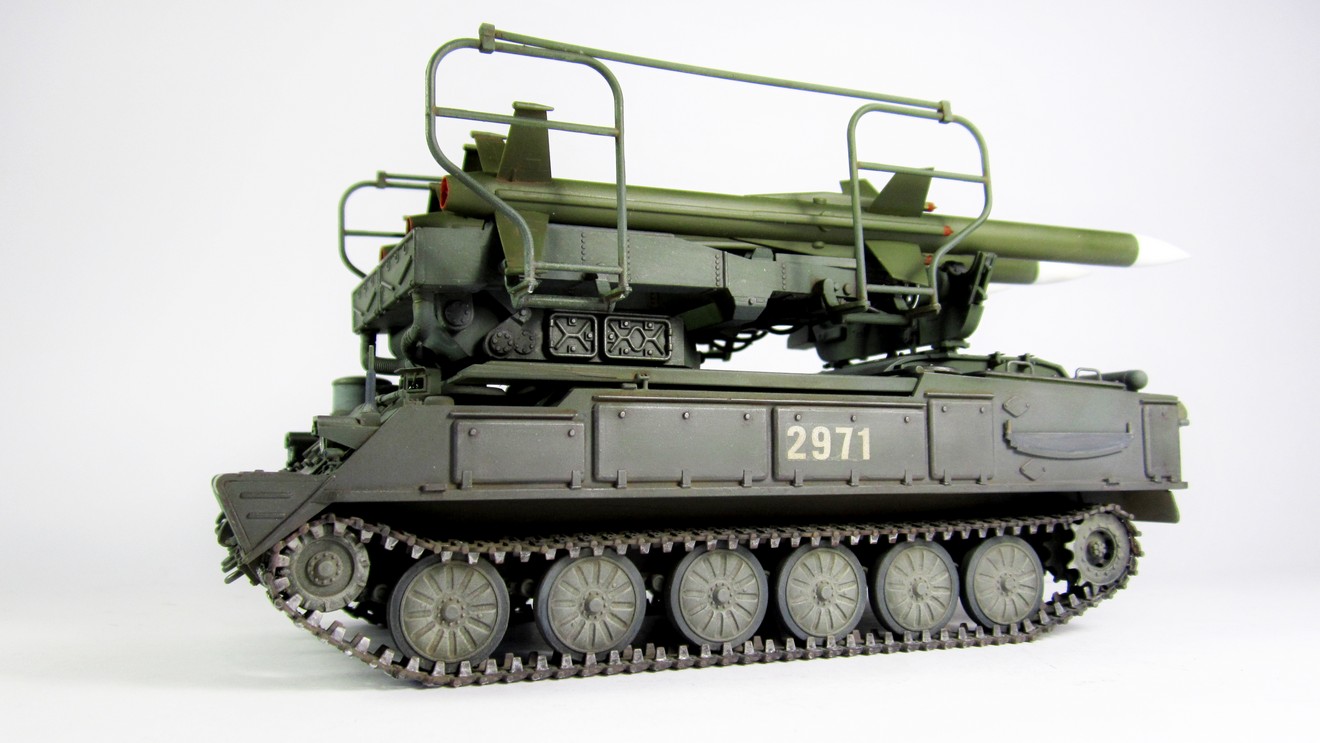 Каким бы корявым не был этот набор, он действительно очень интересен, о чем кстати тоже говорилось. И интересен тем, что никто его больше кроме Трумпитера (ну и Моделиста) не делают. А жаль... Но, надо сказать, даже при имеющихся недостатках в геометрии модель очень приближена к прототипу, и сделав её, с другим ЗРК не спутаешь однозначно.Как сделана модель мне понравилось. Продемонстрировано и боевое и походное положение - это положительный момент. Сделано и показано достойно. Тоже мечтаю собрать эту модель. С привязкой по окраске и бортовым номерам к конкретному "хозяину", мне кажется, была бы еще интересней.Название только писать надо правильно. Это СПУ 2П25 ЗРК "Куб".