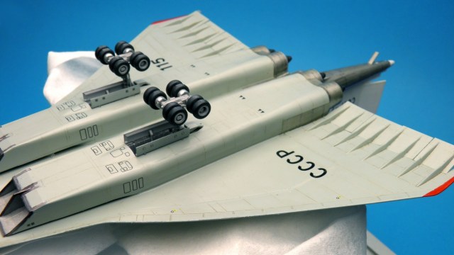Отличная модель СПС получилась! Очень понравились жаропрочные покрытия а районе двигателей. Сами сопла РД-36-51 стоило заточить до остроты, они в реале очень тонкие. Цвет крыла сверху гораздо светлее по тону и цвет стоек и дисков шасси серебристый, в остальном супер!