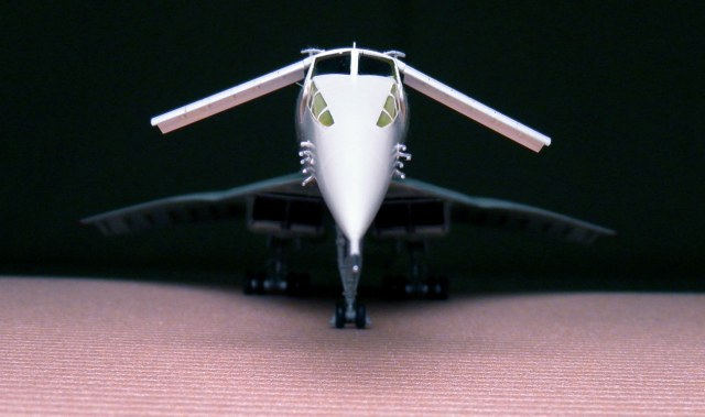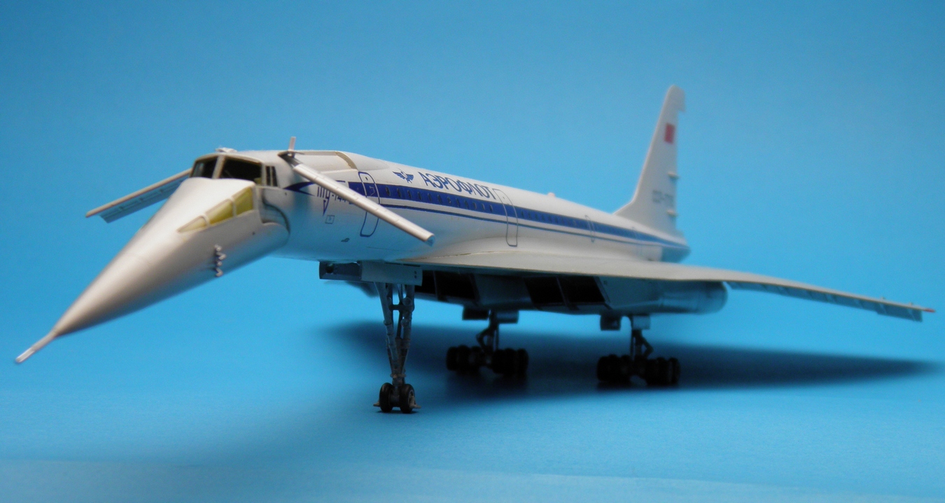 Очень большая просьба прояснить "пикантный" момент. Был хорошо известен набор от "ПластикАрта", в масштабе 1/100 - с трёхосными (!) стойками. И, честно говоря (вы будете смеяться), только сегодня внимательно рассмотрел, что стойки шасси у реальных Ту-144 были, все же, двухосными.