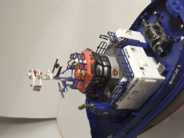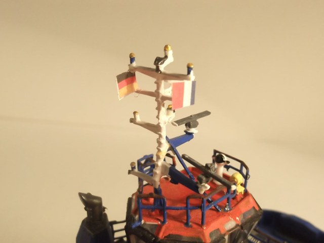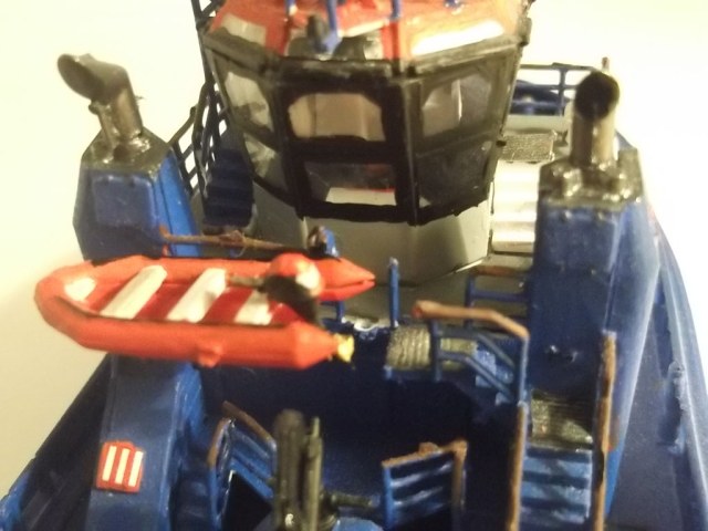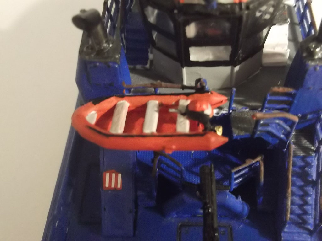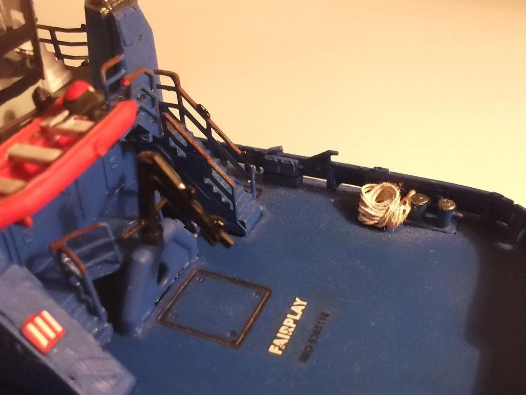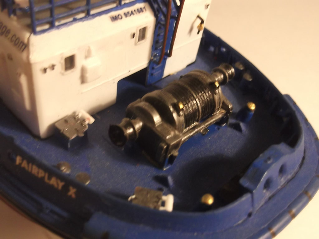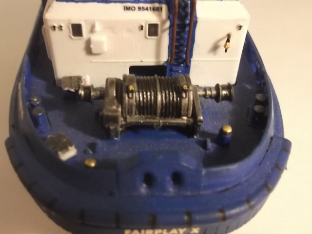Модель получилась , есть недочеты по окраске : Палуба обычно или зеленая или светло-серая , буксирный битинг , кнехты -черные , на носовую лебедку можно намотать несколько мотков капроновой нити с гашей .