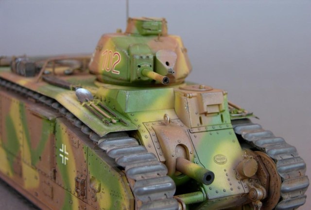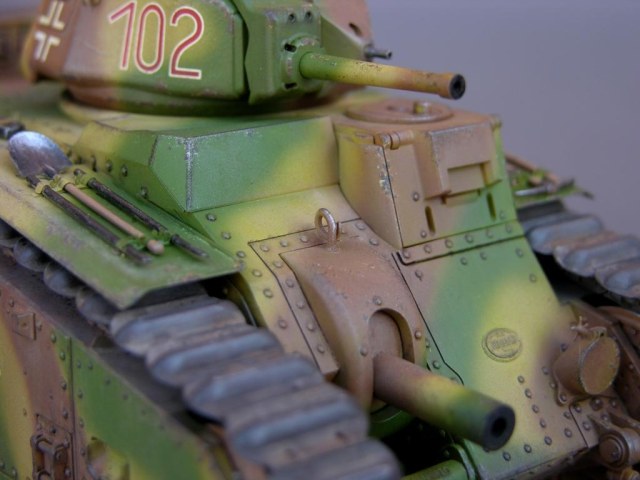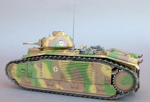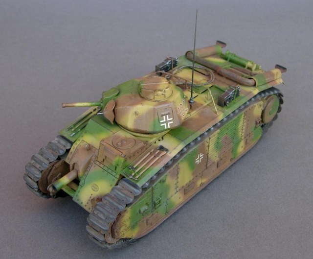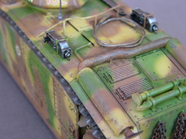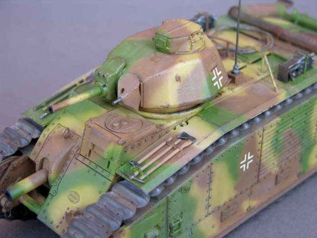 Добротная работа. Но малое сомнение вкралось: По логике, это трофейная машина. Но! На ней совсем поздний тип т.н. "засадного камуфляжа", характерного у немцев лишь под занавес Войны. Неужели этот тяжеловес мог выжить до 44-45 гг. К то му же, он в техническом смысле здорово "морально" устарел. Неужели немцы при таком напряжении Мировой Войны могли удежать этого "динозавра" где-то в кустиках еще со времен покорения Франции?(1940 )) Не копался, но сомневаюсь.