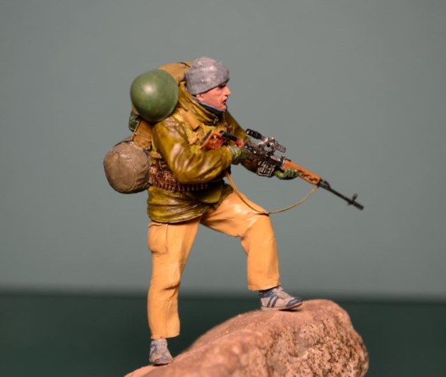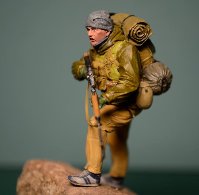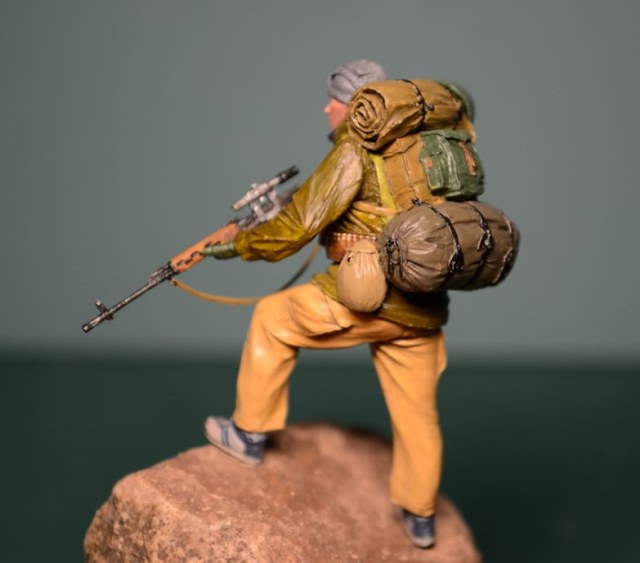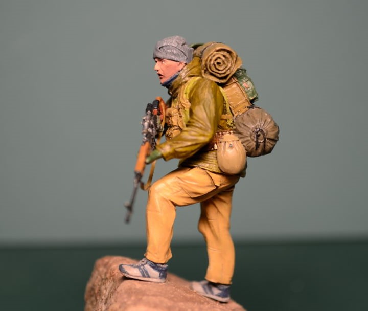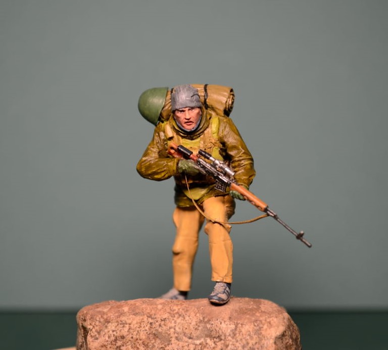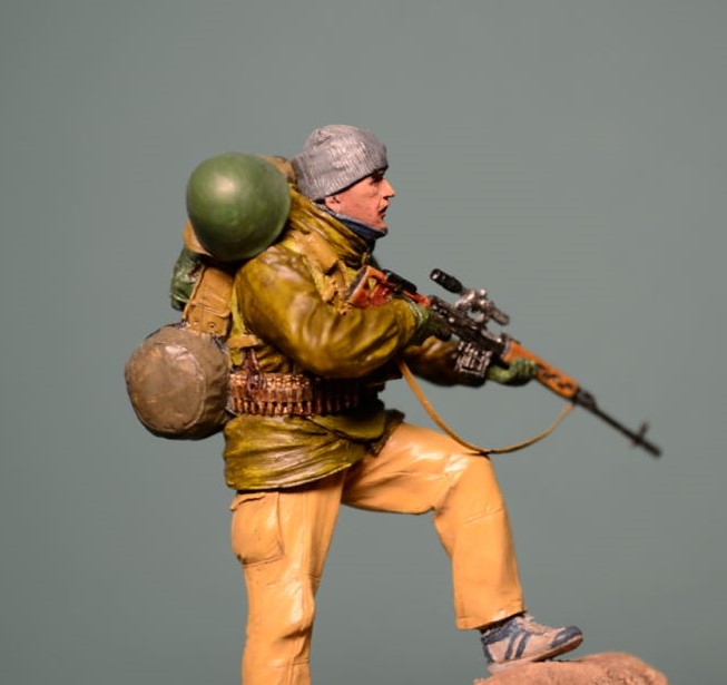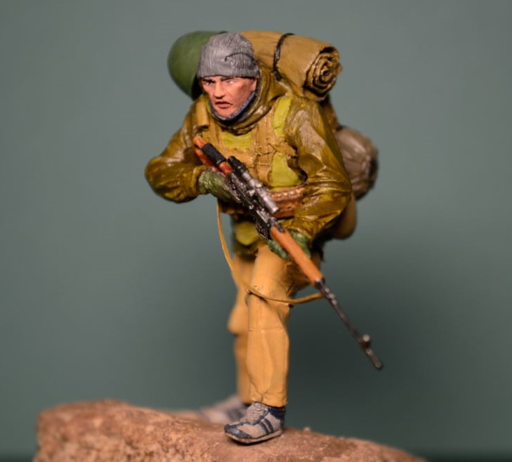 Спасибо за отзыв. Ну а насчет обувки фигура заявлена как спецназ в Афганистане, да и когда думал как расписывать, по матчасти "погуглил", много наших спецназовцев по горам в кроссовках "кимрах" бегало.