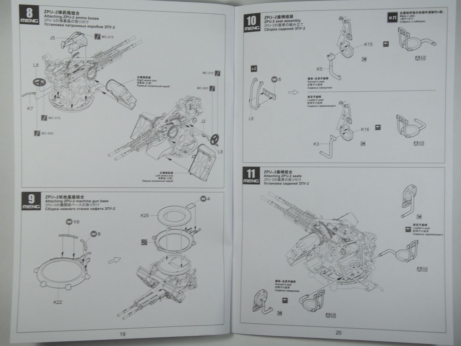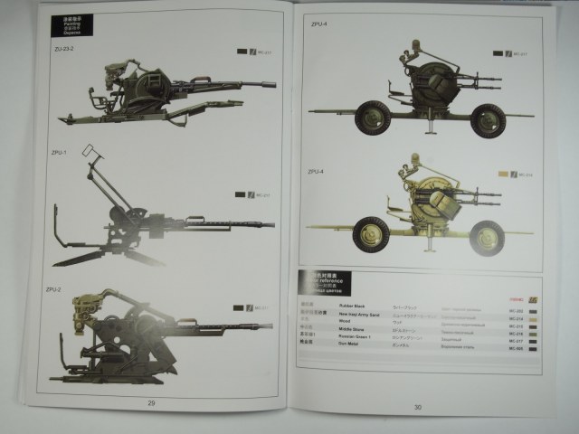 Традиционна и инструкция в виде книжки на 4 языках (в т.ч. и на русском). С недавнего времени, Менг стал выпускать свою линейку краски(видимо, лицензионную АК) и теперь в инструкции вместо цветов палитры Валлехо дается Meng Color.