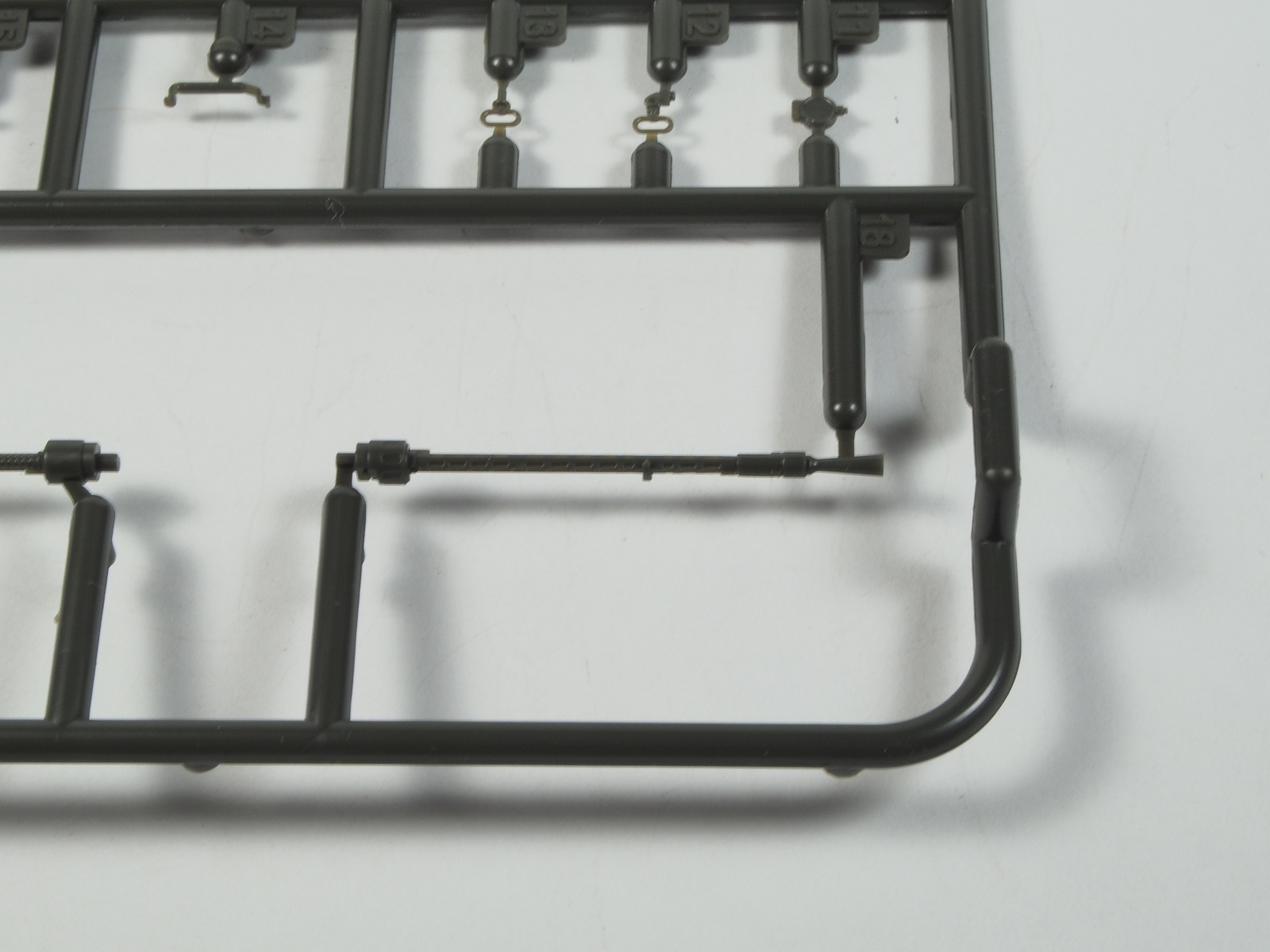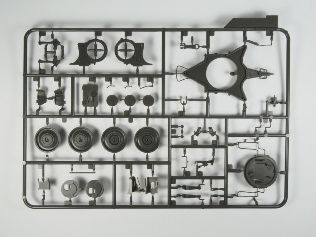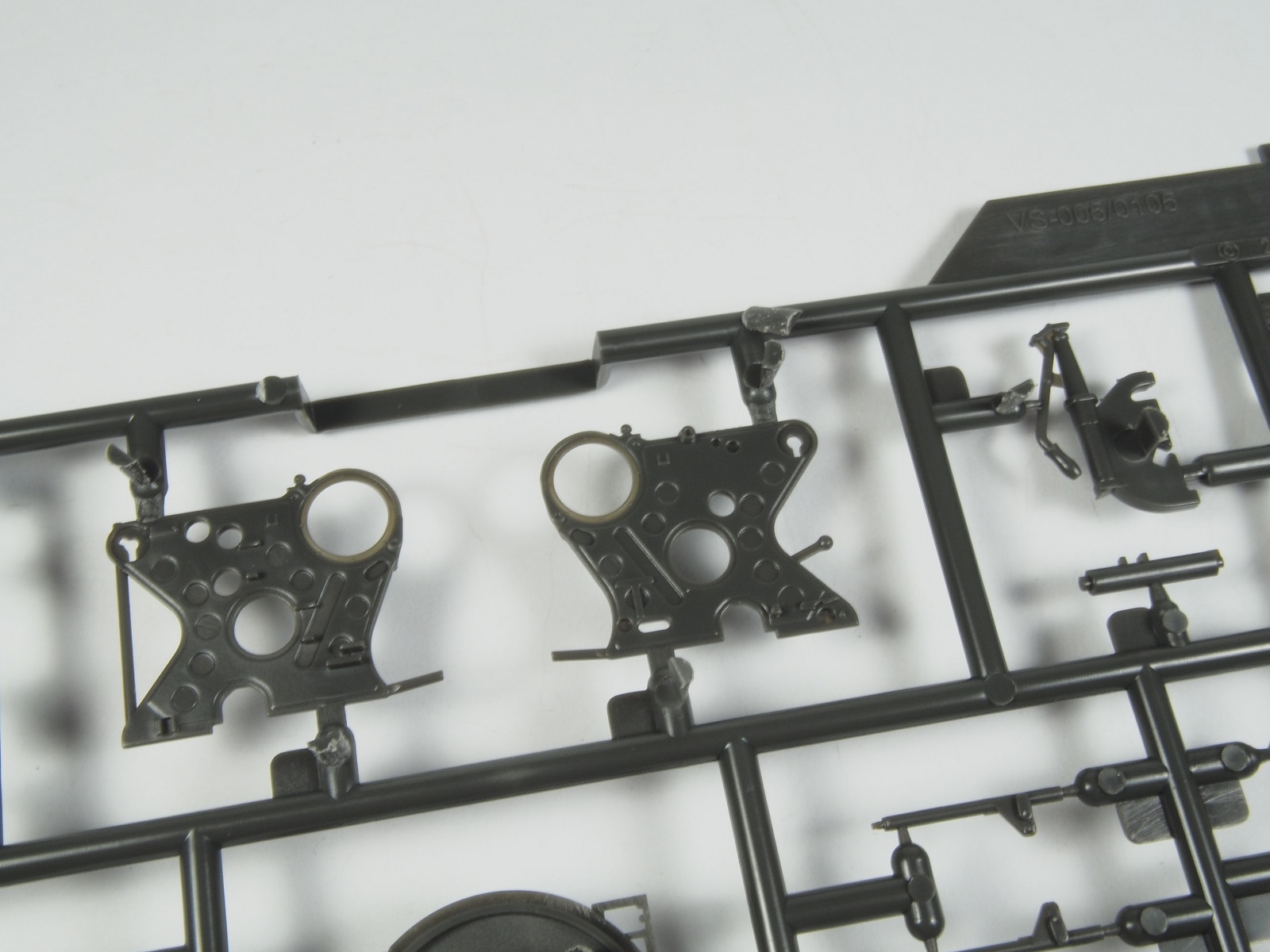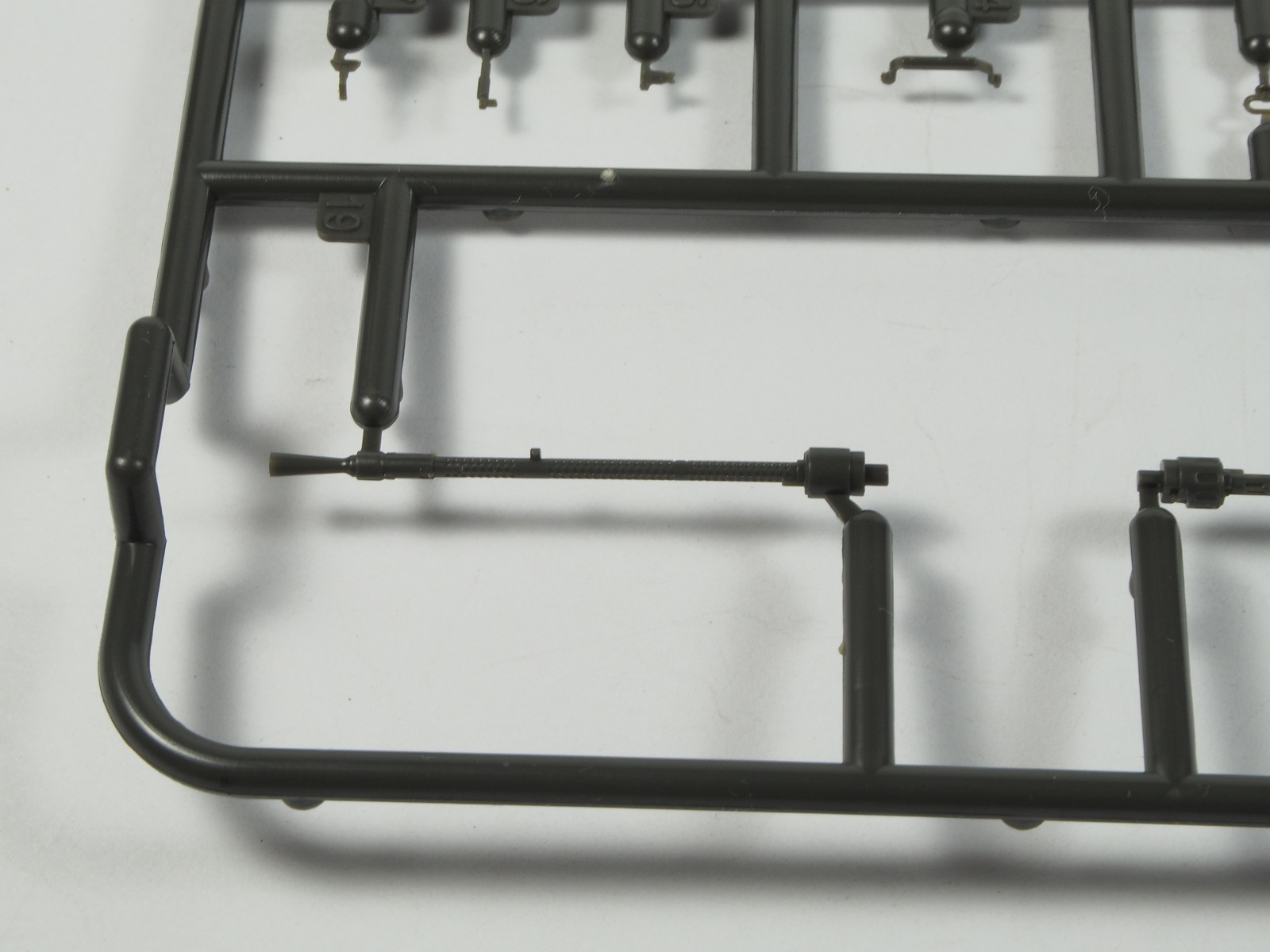 Качество литья традиционно превосходное: небольшой облой обнаружился лишь на одной детали, утяжин и недоливов не замечено. Детализация, также традиционно высокая - в некоторых местах пластик тонкий настолько, что пропускает свет. Из минусов, пожалуй можно отметить только недостаточно глубокие отверстия стволов со стороны дульного среза, всего 1,5-2 мм глубины.