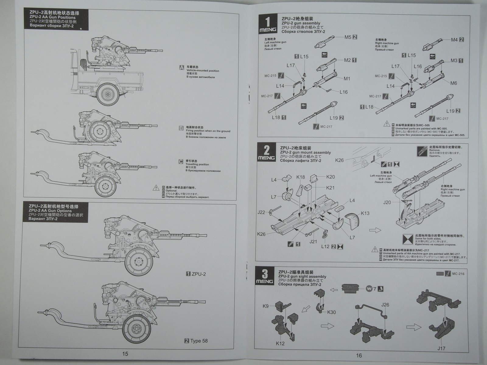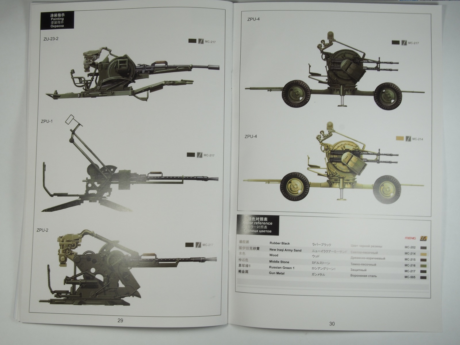 В мае 2016 года Менг выпустил любопытный набор SPS-026, позволяющий собрать 4 зенитные установки: ЗГУ-1 (названная производителем ЗПУ-1), ЗПУ-2, ЗПУ-4 и, конечно же, ЗУ-23-2.
