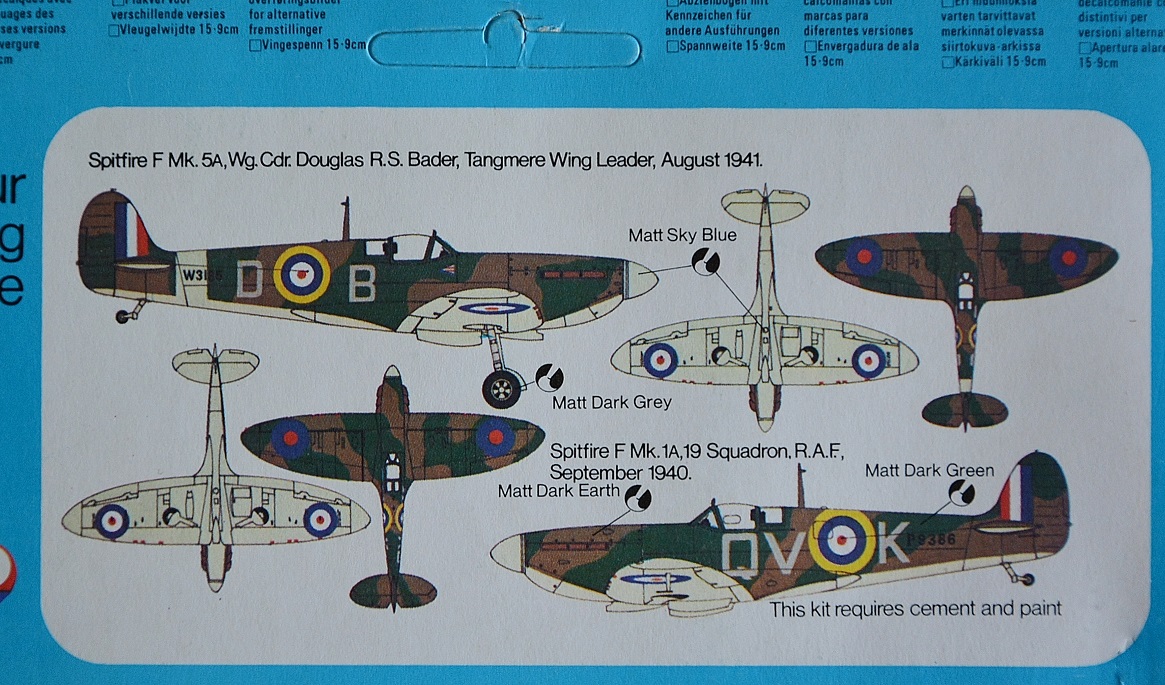 На счет декалей. Один из вариантов оформления – самолет знаменитого безногого аса Дугласа Бадера. Что само по себе интересно. Если б не чудовищное смещение желтого цвета, НОВОвские декали можно было бы назвать отличными! Если их подольше подержать в теплой воде, не прилагать усилий и дождаться пока картинки сами всплывут, то декали вполне реально перевести! Проверено! Даже «околобардюрные» надписи, о том где ходить, читаются, буковки разборчивые.