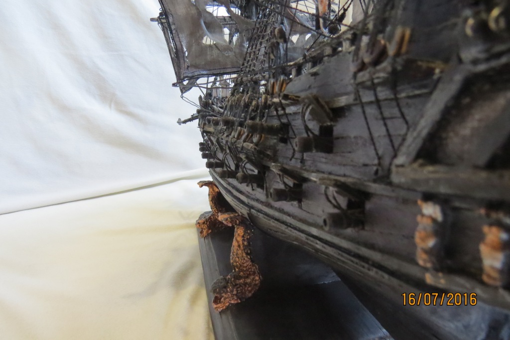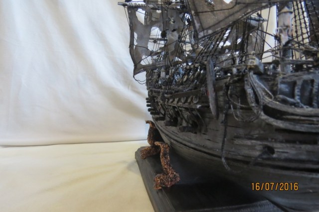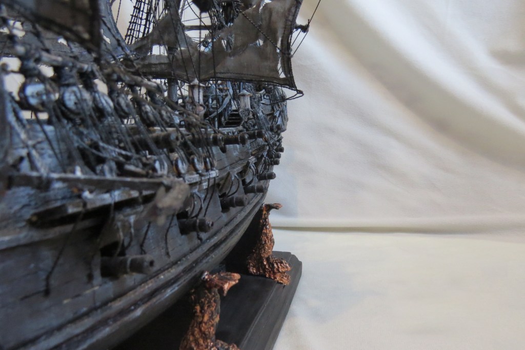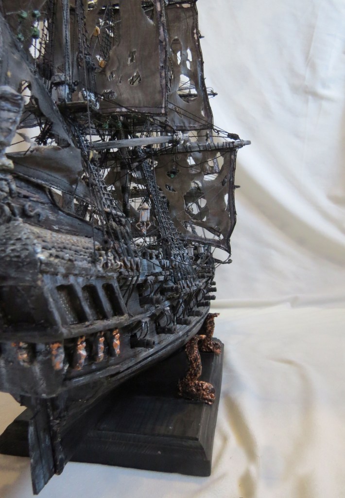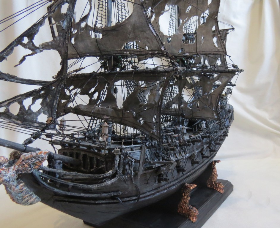 В модели старался передать ту жуткую атмосферу мертвого корабля, которую мы видели в первой части фильма, результатом остался доволен, хотя сам сейчас вижу море косяков. Это моя первая модель корабля, и первый серьезный проект в моделизме.
