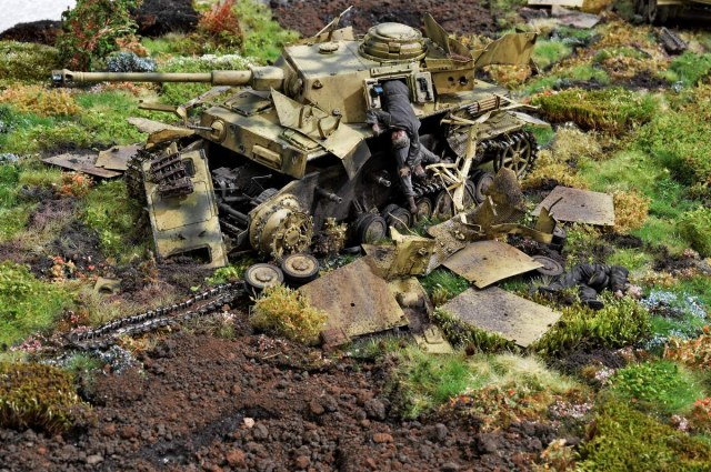 Танк отличный, трава земля - полный реализм. А вот трупов я столько бы не делал - один максимум. Но это уже древлян коллега с чудесной работой!