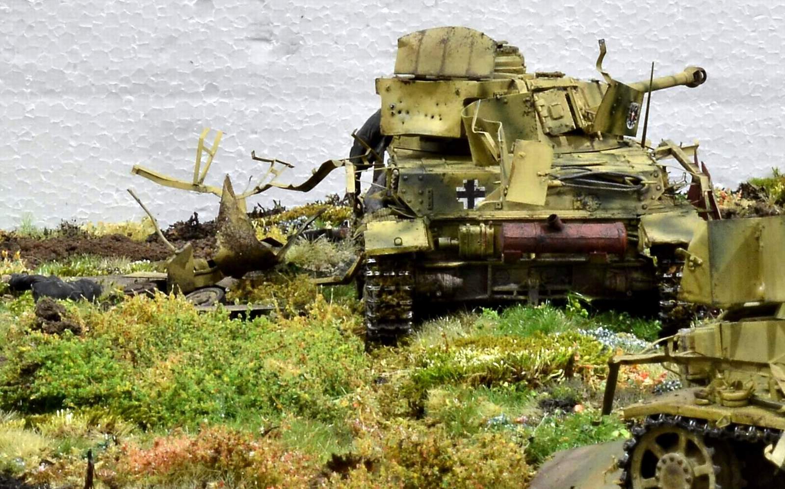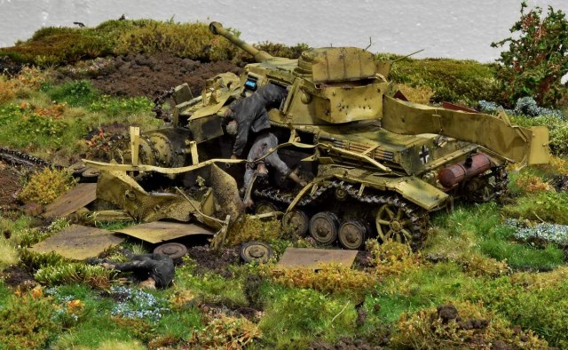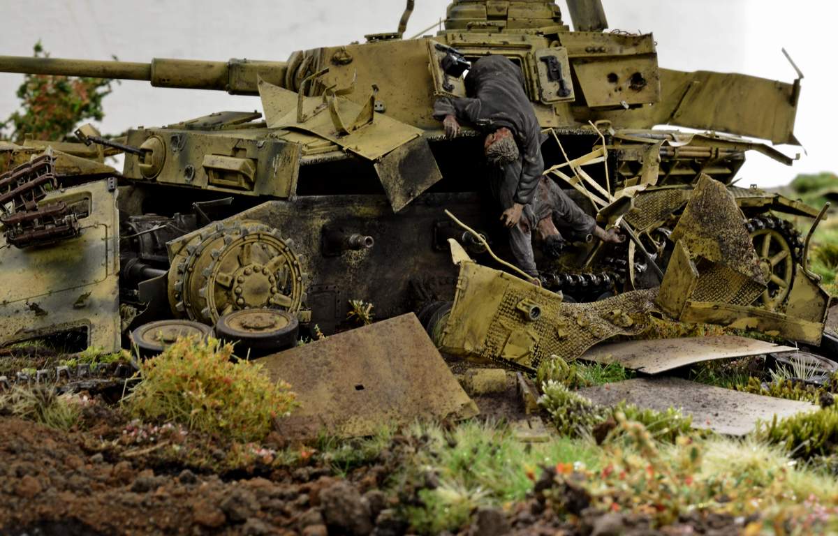 В связи негативным подходом некоторых, может и многих, зарегистрированных пользователей к фигурам трупов немецких танкистов внёс изменения в название работы и заменил фотографии. Более никогда не буду делать фигур погибших солдат. Пусть будет так, и слова «должен быть весь драматизм войны» остаётся в работах этих авторов, которые это делают. Ещё раз благодарю всех, кого заинтересовала моя работа!!!