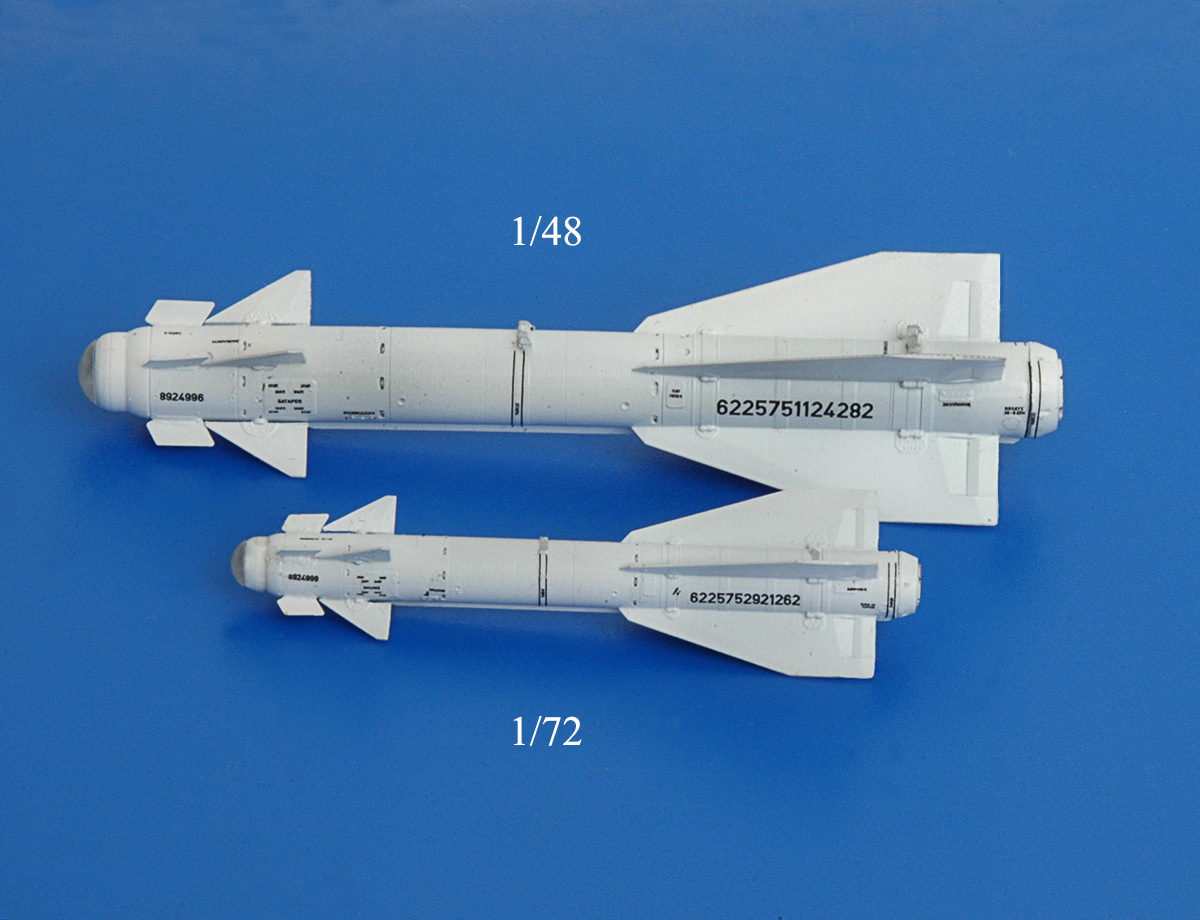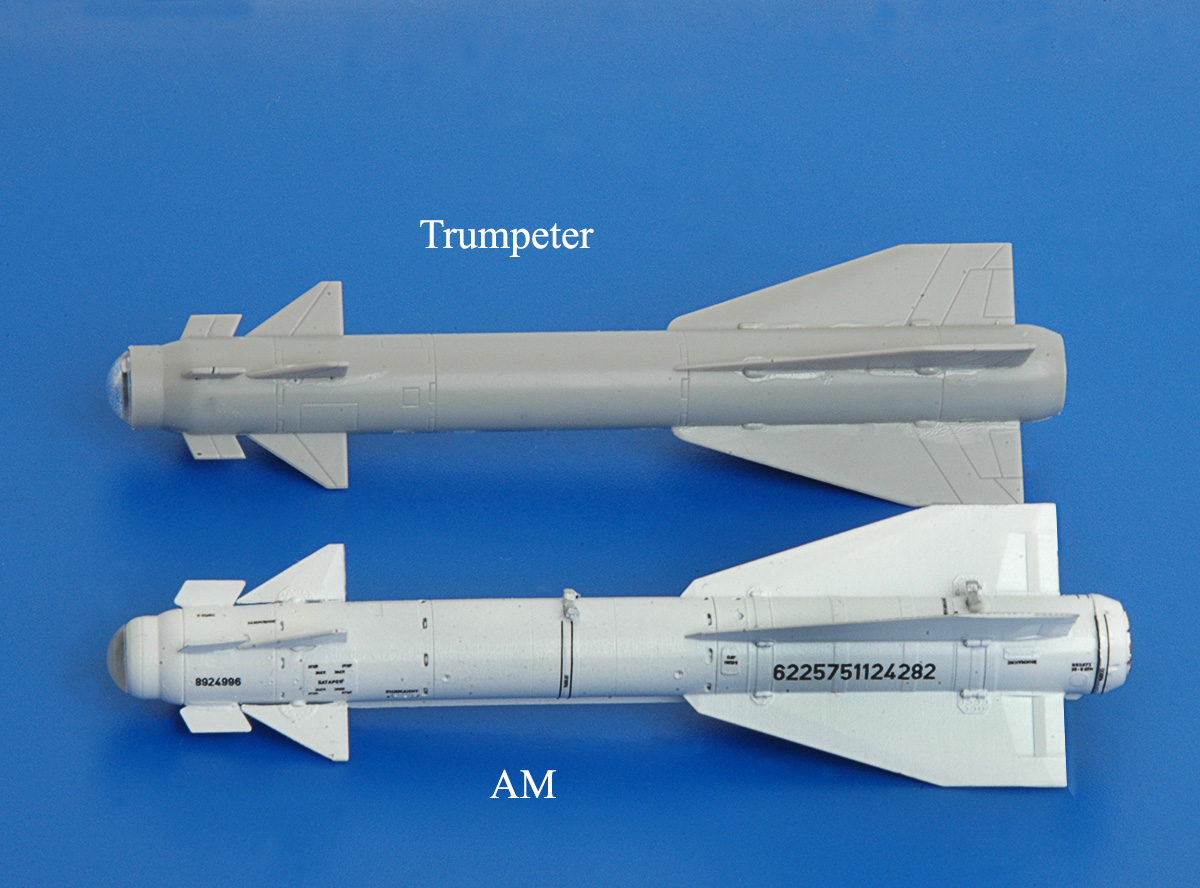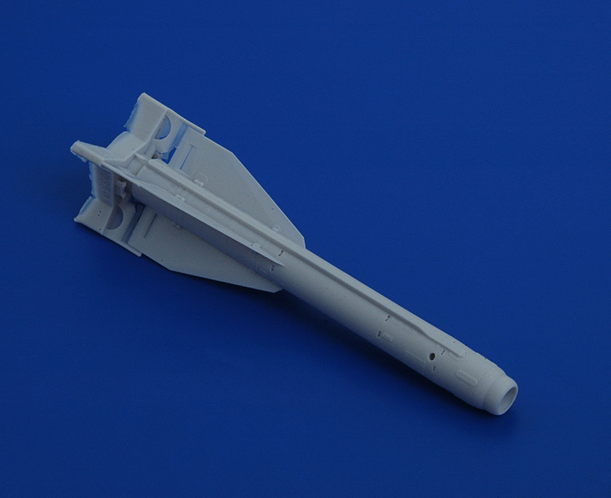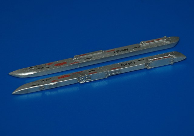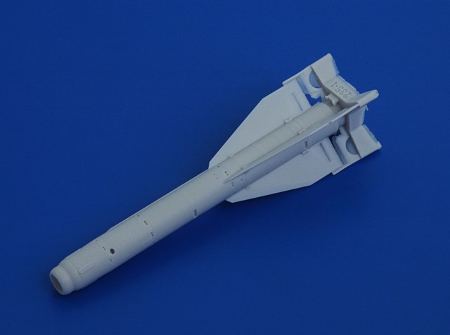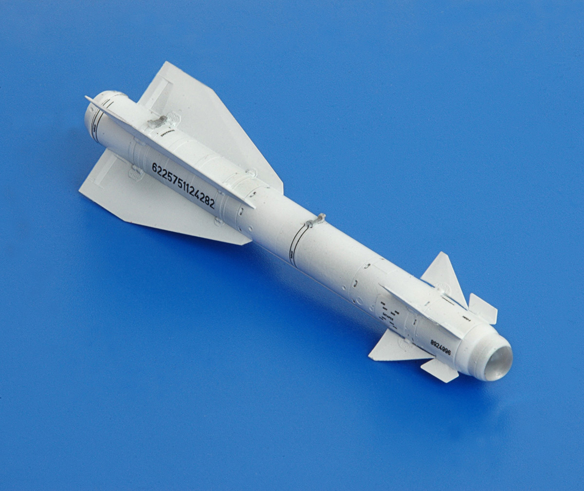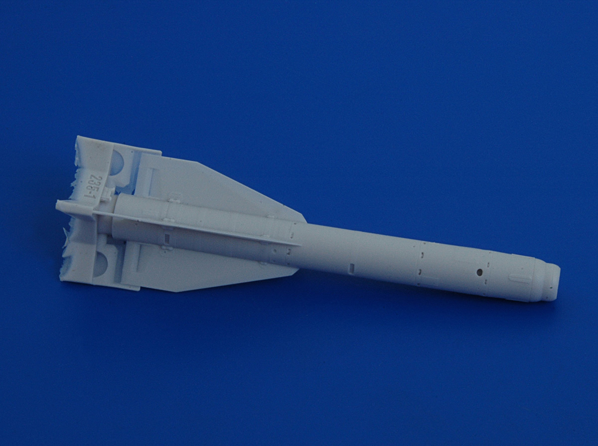 В очередной раз хочется отметить продуманное технологическое членение. Конструкция ракеты Х-29 - модульная, варианты 29Т и 29Л различаются только типом установленной ГСН. Напрашивается вполне логичное решение – выполнить два типа головной части и для уменьшенной копии ракеты. Компания АМ не поддалась такому искушению. Подобное членение, как и отлитые отдельными деталями крылья, значительно упрощают жизнь производителю модельной продукции, но являются источников головной боли даже для опытных моделистов. Ракета отлита в одну деталь с крыльями и ГСН.