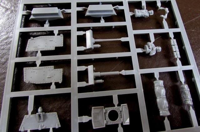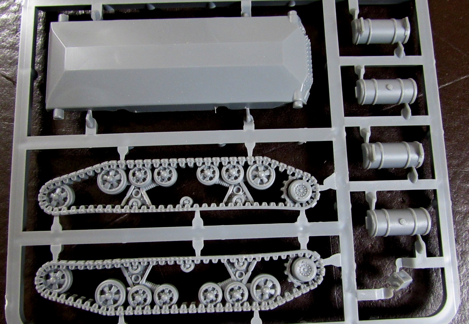 Модель упакована в коробку неплохих для этого масштаба размеров. Загрузка боковая. Внутри - аж шесть литников для сборки трех машин,  и инструкция. Декали, соответственно, нет.