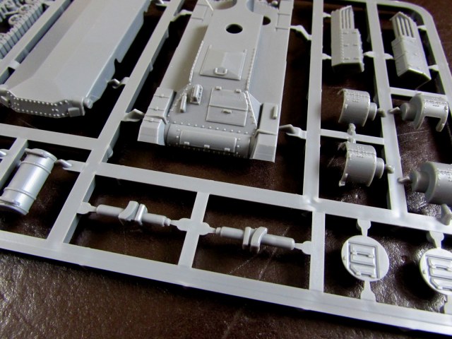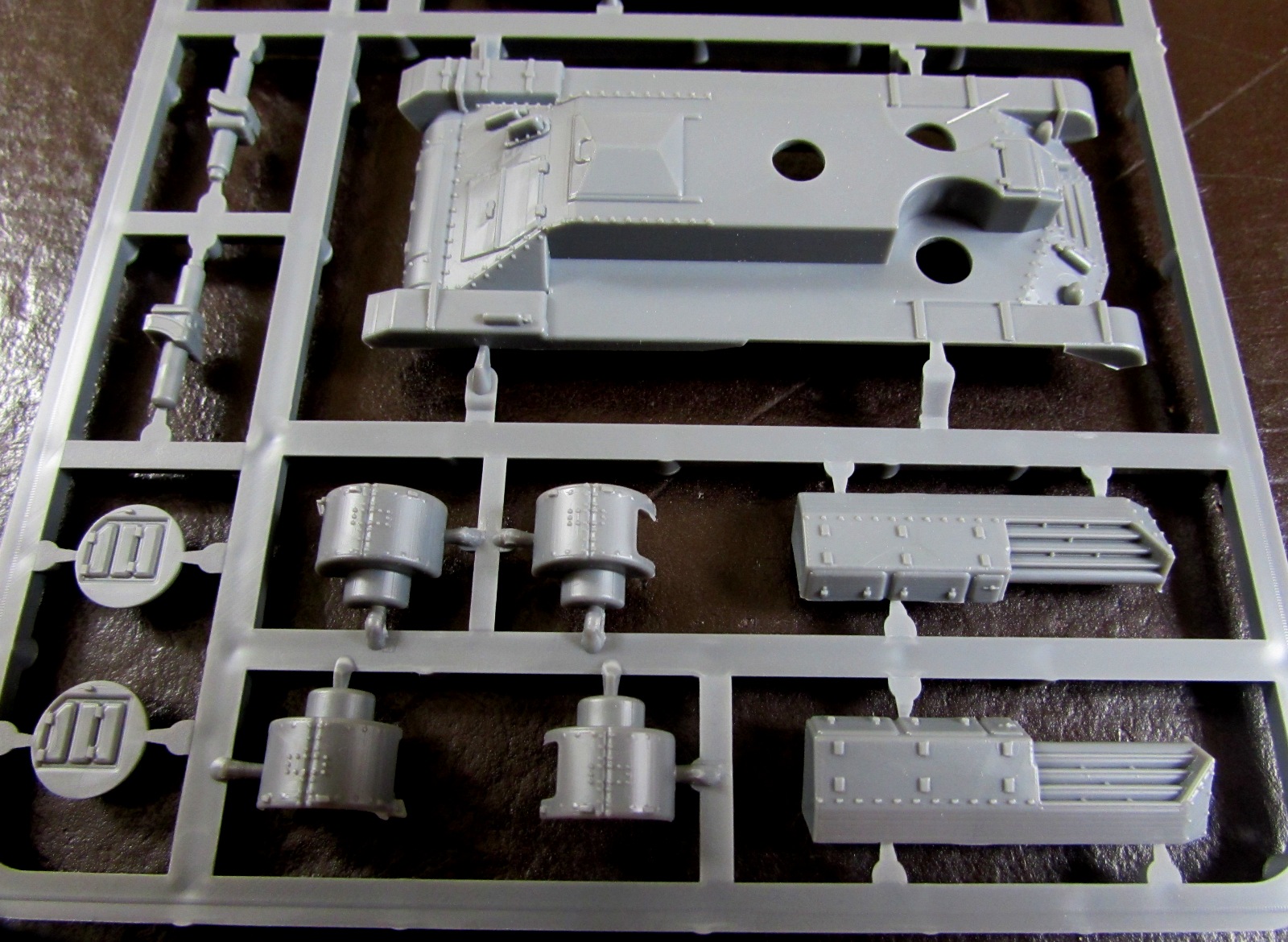 Башня и корпус противоречивы. Содной стороны, есть и клепка, и относительная правдоподобность, а с другой - потеки пластика в роли фар, лопат и прочей мелочи.